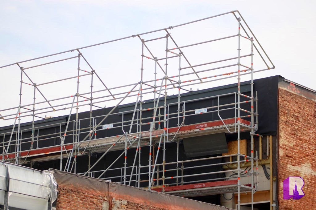 Progress also continues at the Spider-Man show building with more brick and factory style theming.