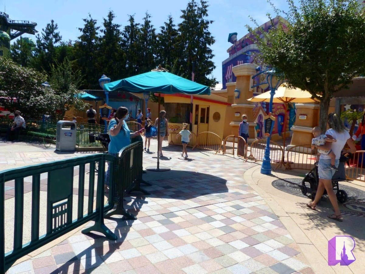 In Frontierland, the « ranch » area (even though it hasn’t been a ranch in years) is getting ready to reopen after a remodel designed to optimize queues, renew the lighting (especially as Rhythms of the Pride Lands is expected to run until November) and repaving.