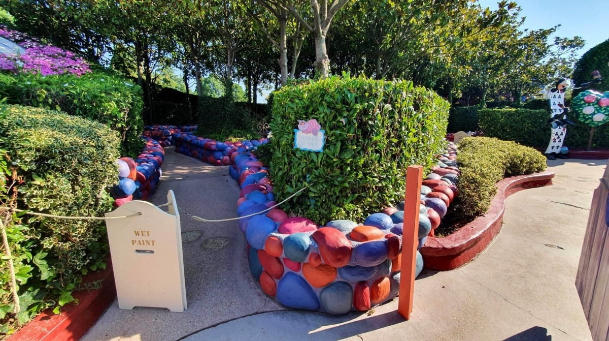 And a section of Alice’s Curious Labyrinth is closed as the artists repaint the colorful rocks. This was much needed but also a tough show element to maintain as many Guests sit or walk on them.