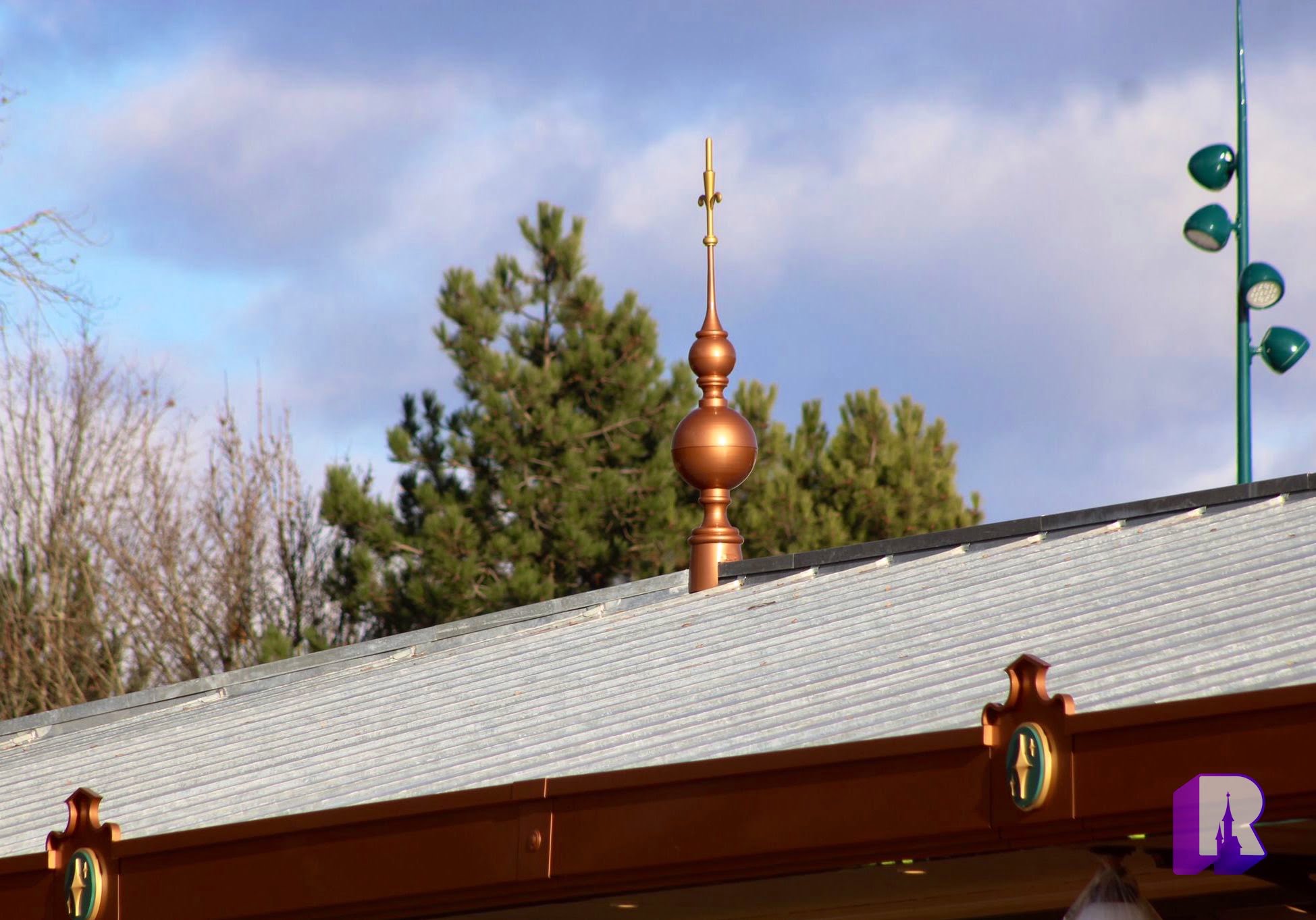 In the Resort Hub, more theming is being added to the new security gates under construction. One of my favorite current projects.