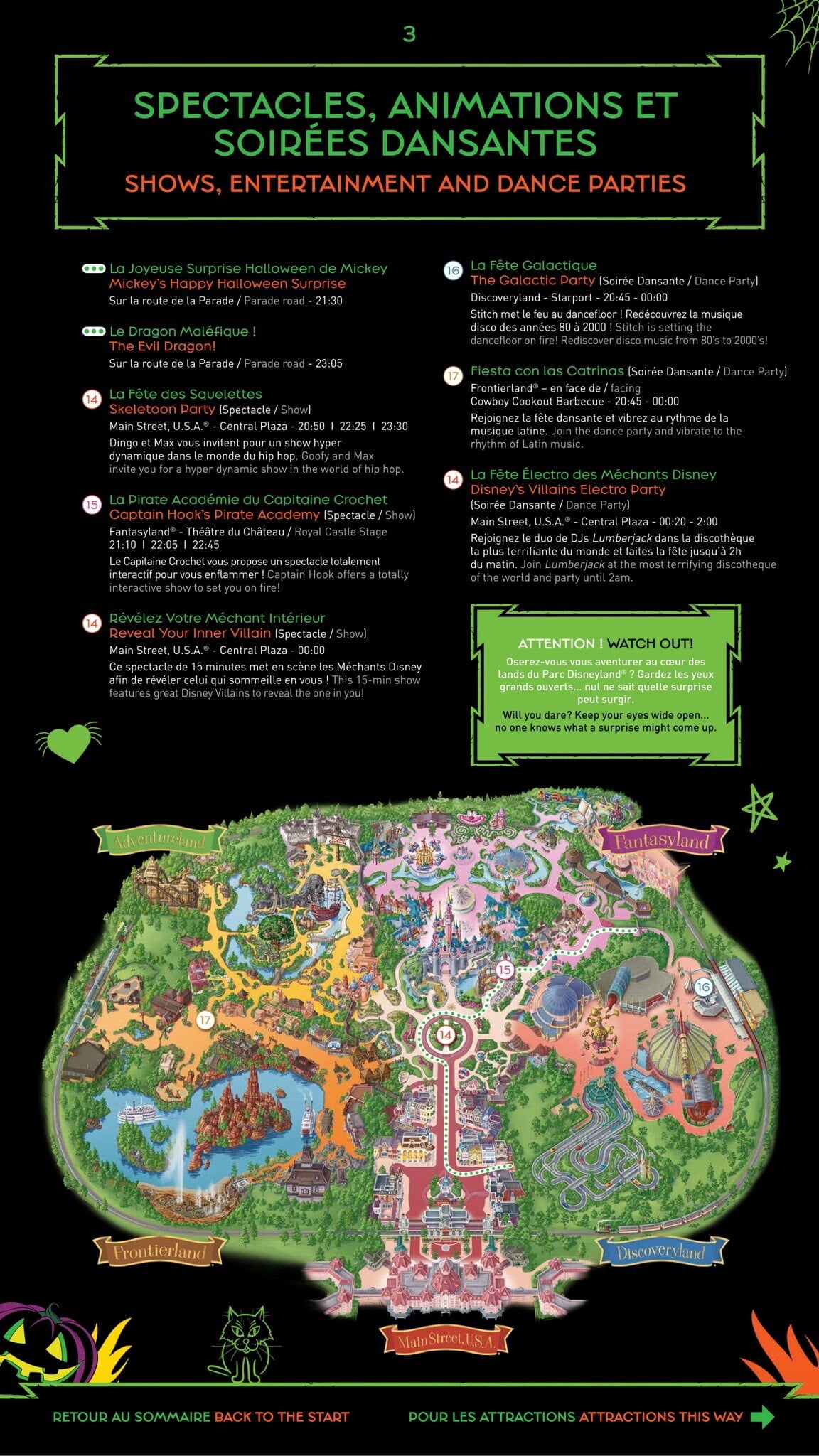 Equipment was also added for the Phantom Manor and Skull Rock projection loops. Guests will also enjoy Mickey’s Halloween Surprise, Max and Goofy’s Sleletoon Hip Hop Party, and Captain Hook’s Pirate Academy on Castle stage: