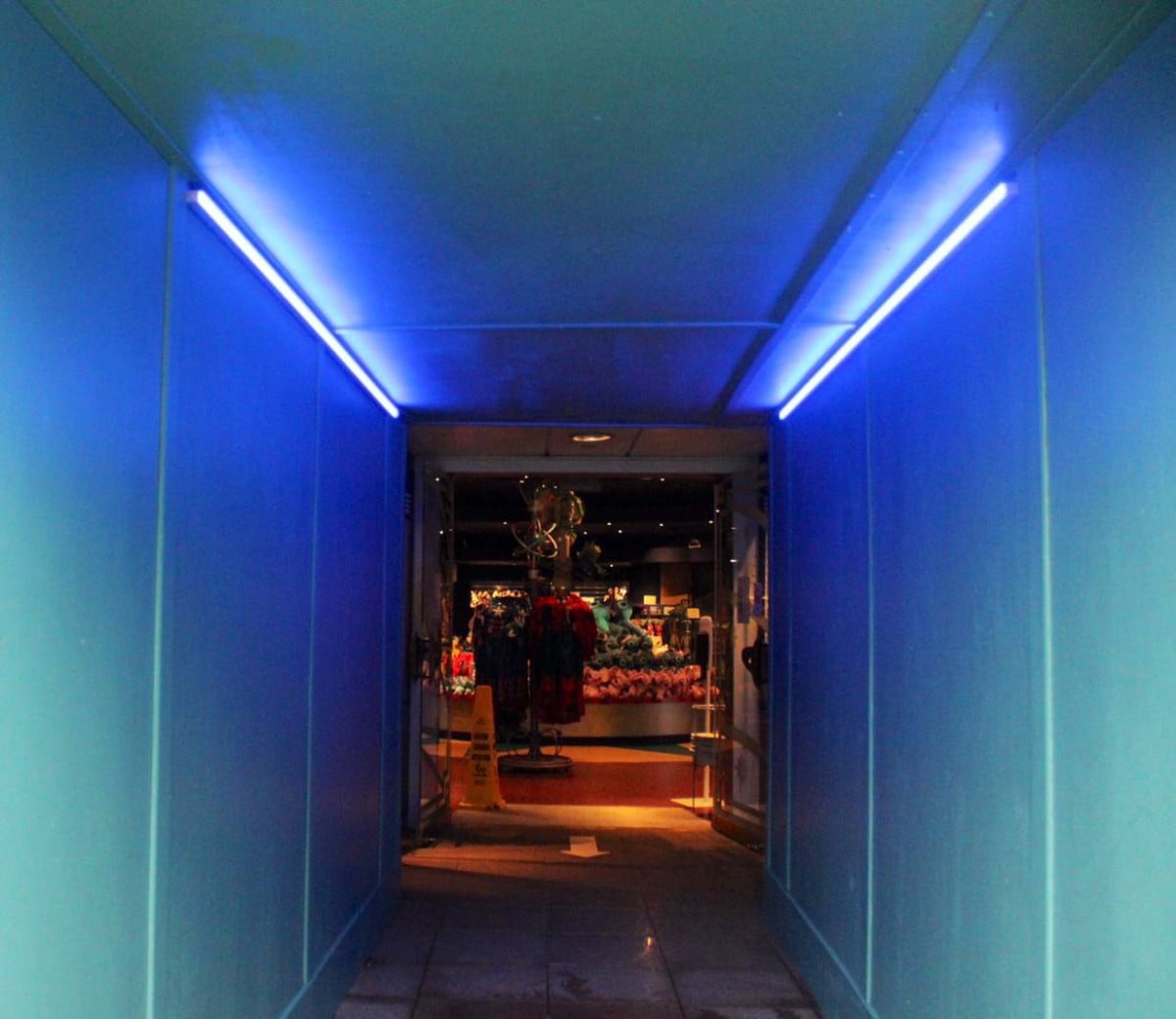 At constellations, blue LED tubes were added to the entrance « tunnel »: