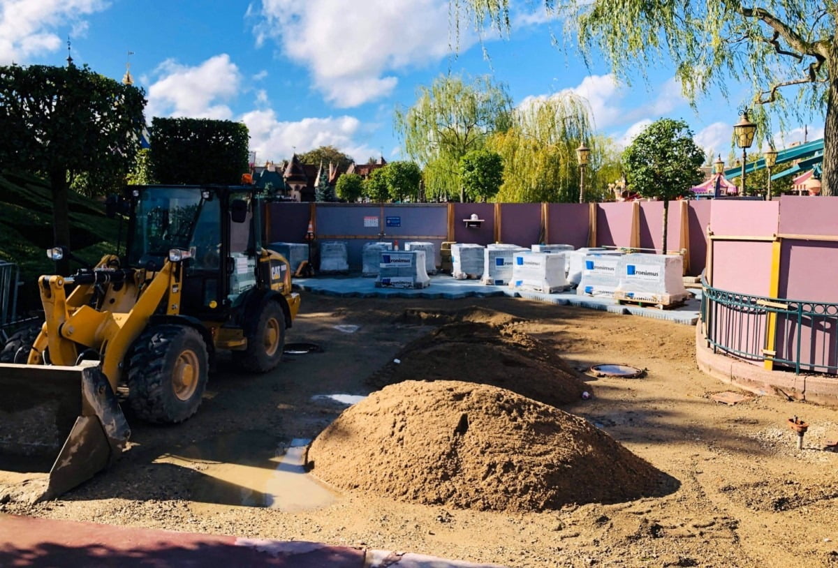 Moving on to Disneyland Park, repaving continues in Fantasyland towards « it’s a small world » with blue pavers: