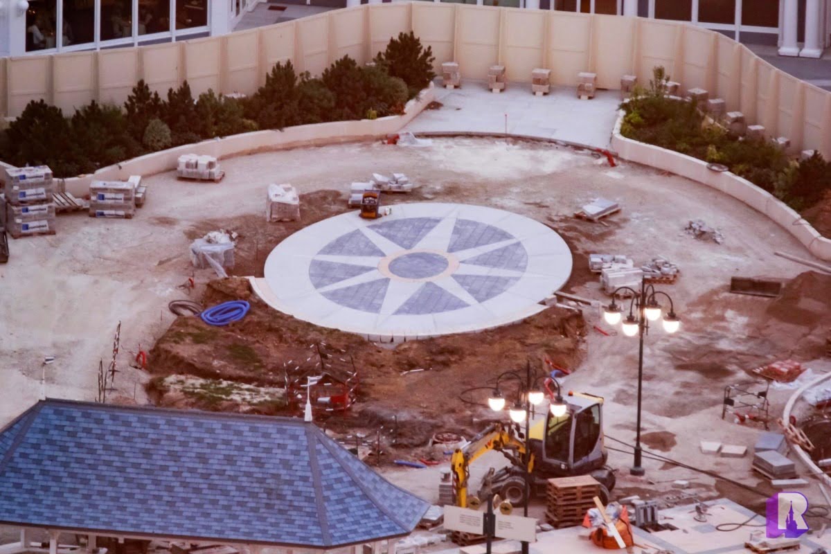 And heading to Disney’s Newport Bay Club – from the sky – a new compass design was built in the middle of the resurfacing project on the lake side: