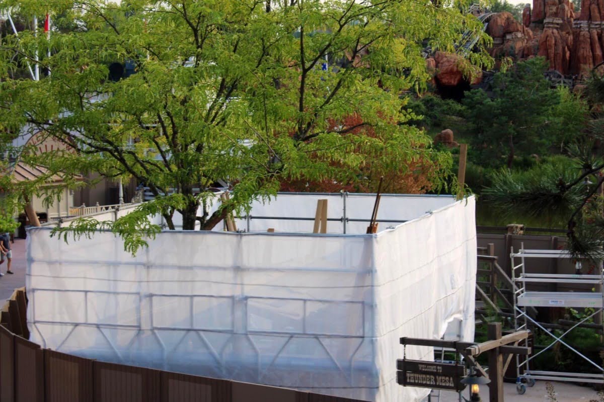The snack stand rebuilding project in Frontierland is now behind tarps, this is what it looked like earlier in the week: