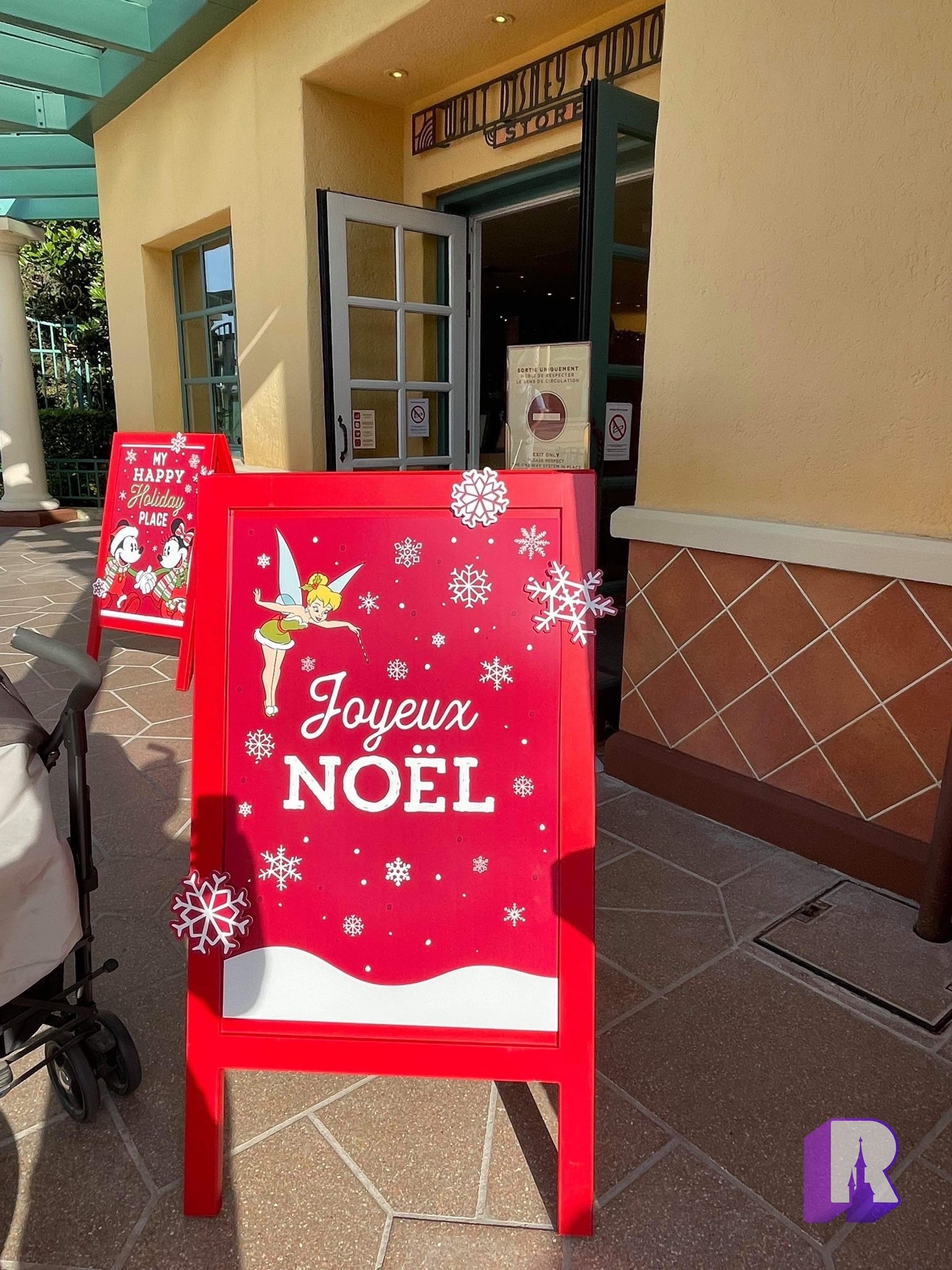 While new Halloween merchandise is nowhere to be seen, Christmas has arrived in the shops all across the Resort: Constellations, Emporium, World of Disney, and even Studio Store with these outlet mall signs.