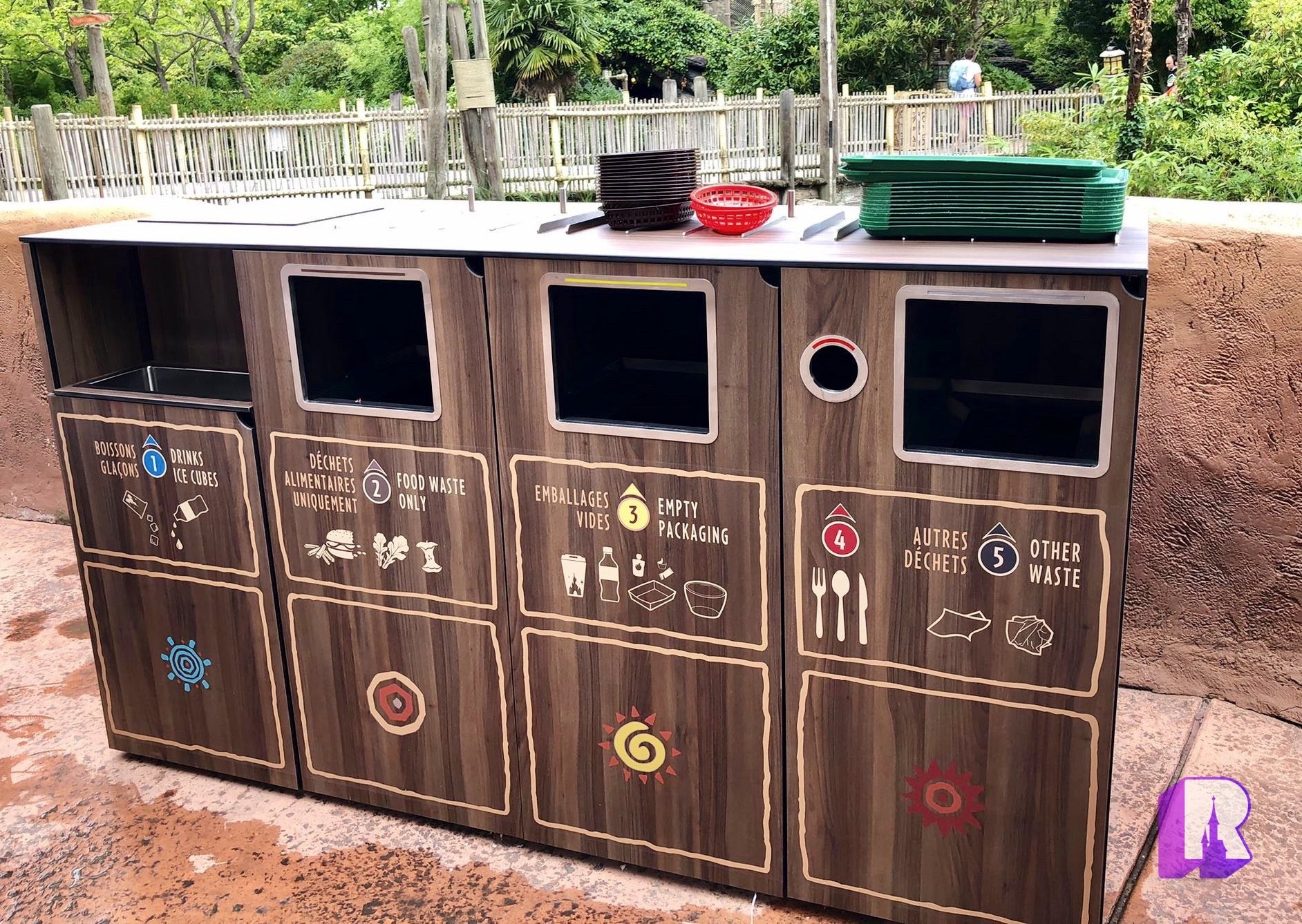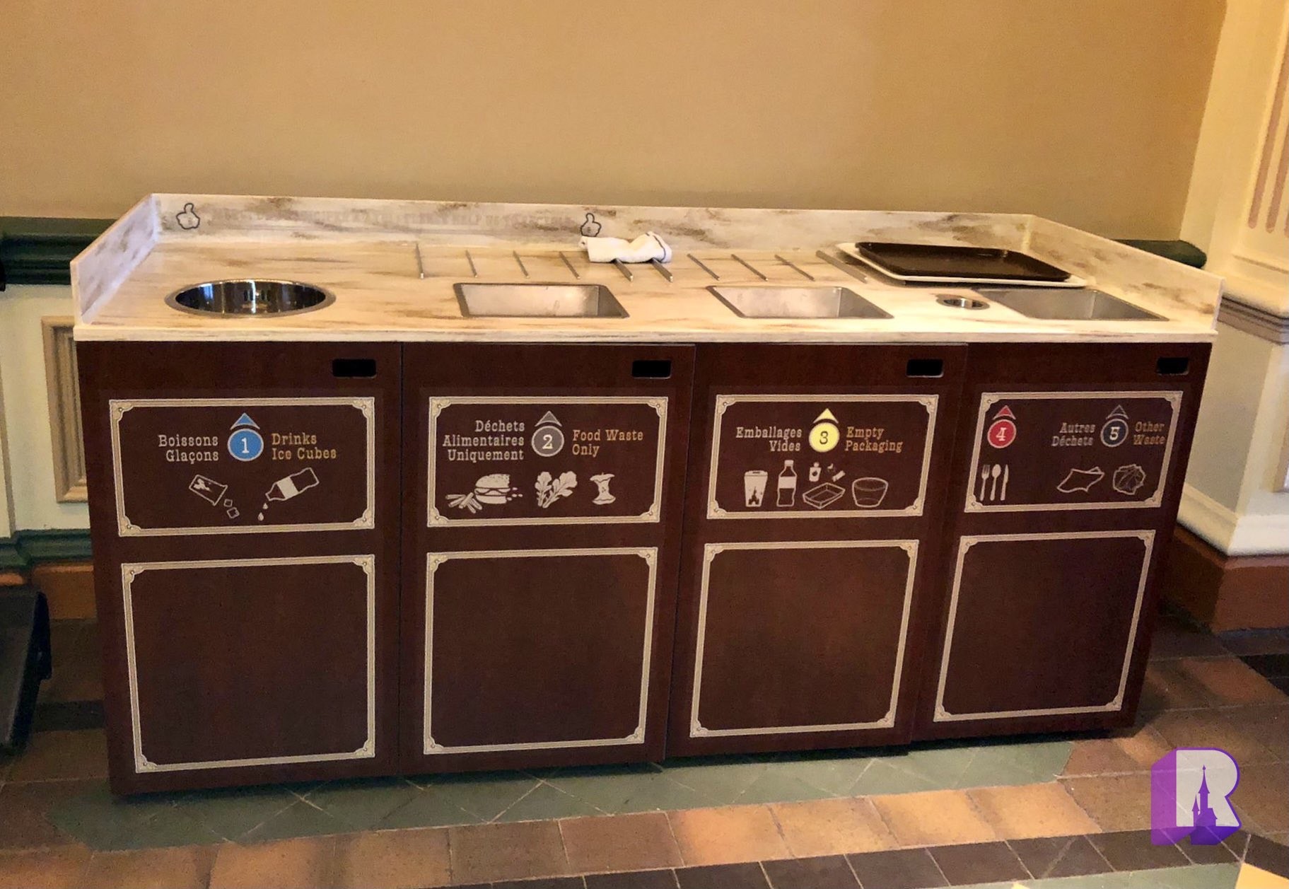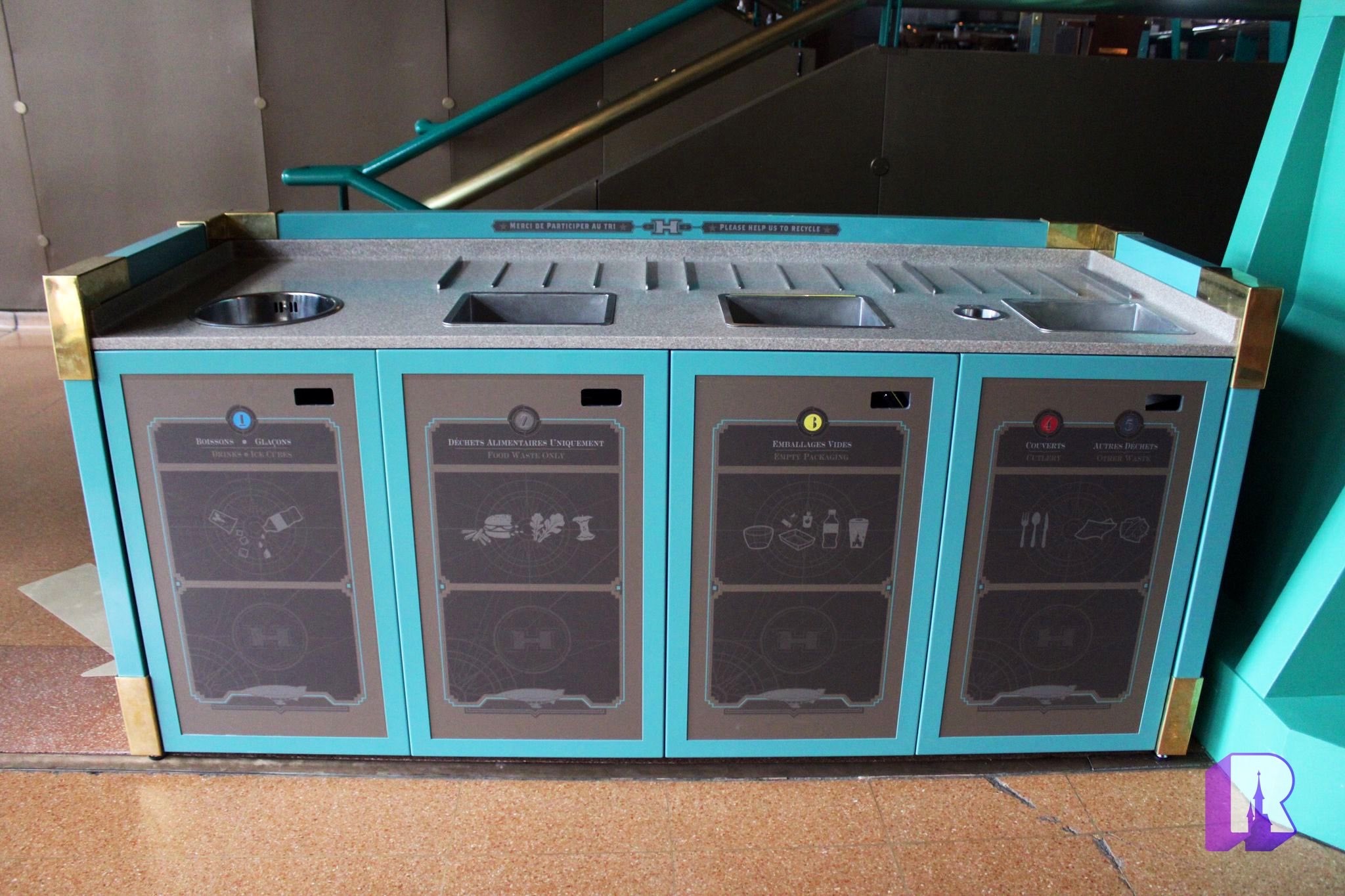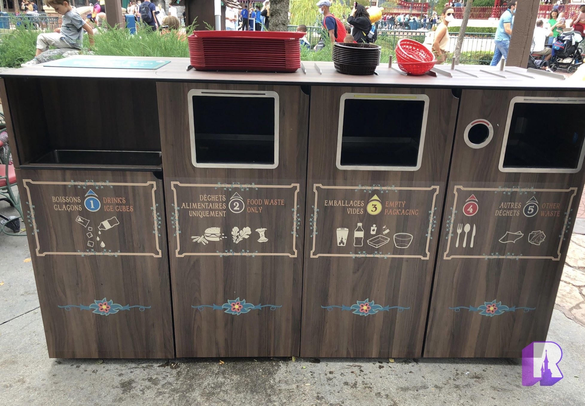 A new generation of bins has arrived all across the Resort at Quick Service locations. These wider themed-ish bin sets invite and help Guests separate all the different types of trash on their trays: liquids, food, packaging, cutlery, and all the rest. A great initiative!