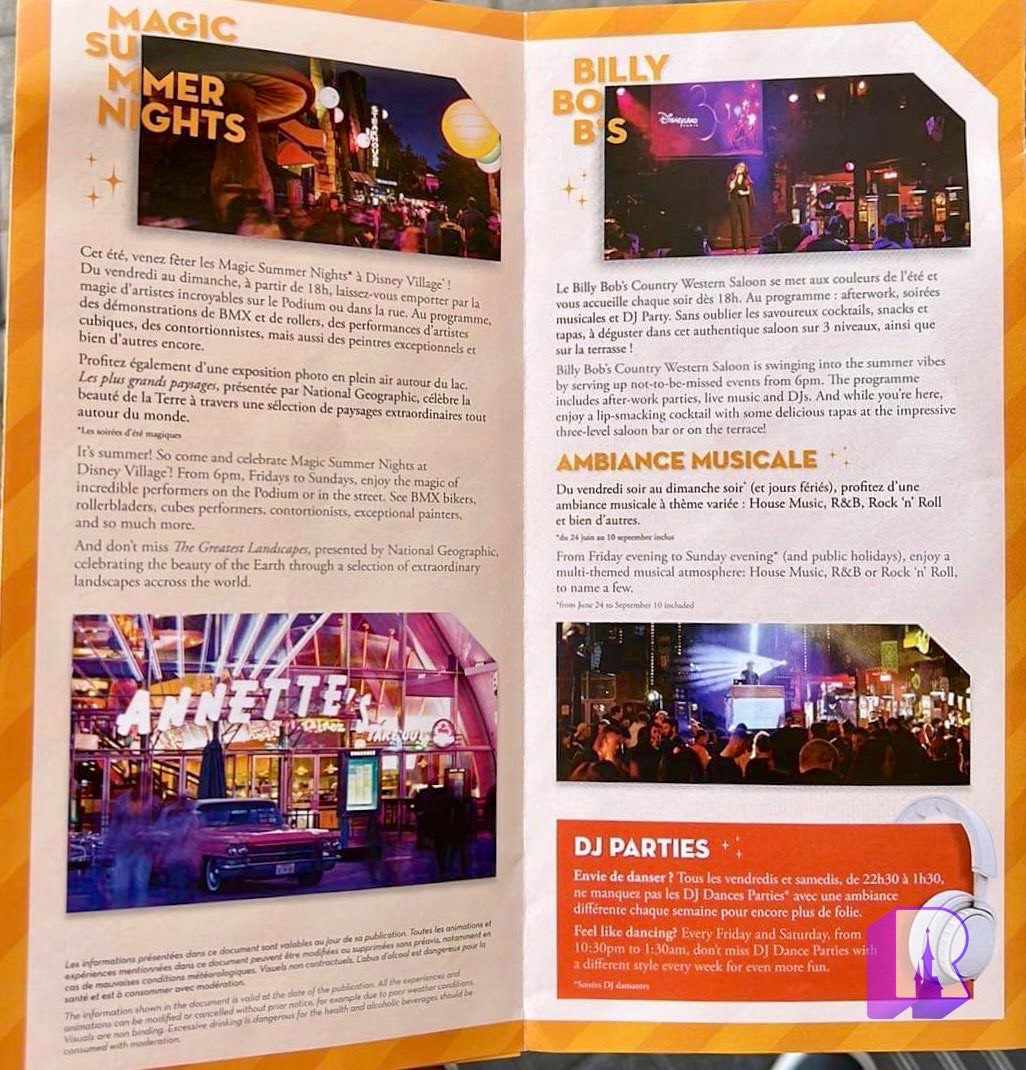 “Magic Summer Nights” are back at Disney Village, with musical performances and street artists (BMX Bikers, rollerbladers, cubes performers, contortionists, painters and more) each Friday to Sunday from 6pm.