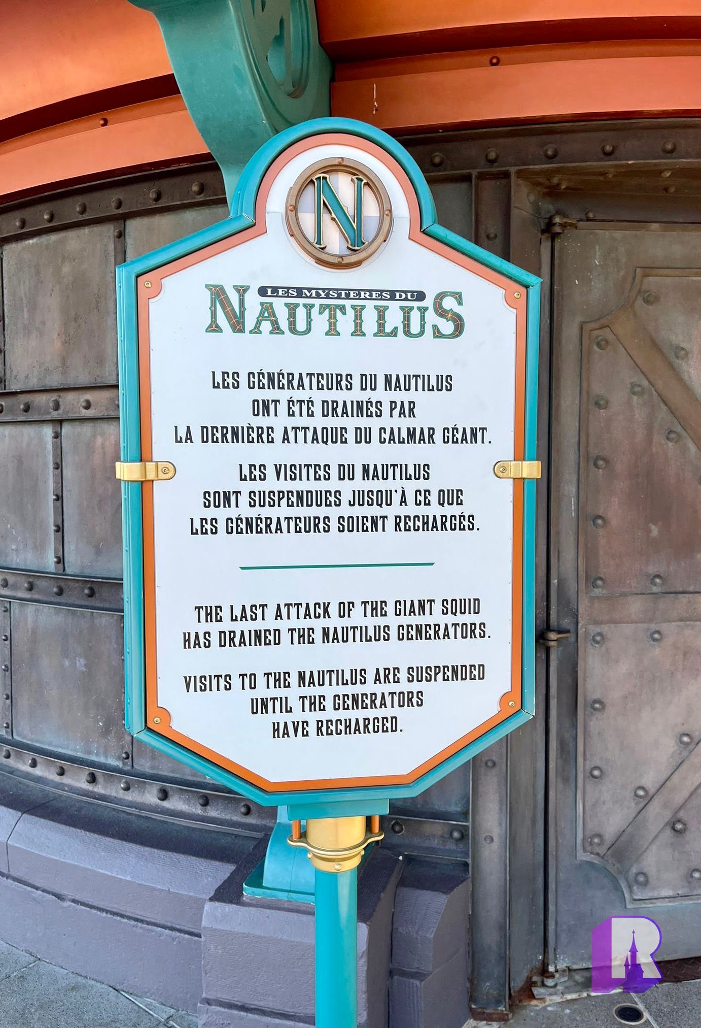 In Discoveryland, this Nautilus sign has been iodate to reflect that – well – the upgrades will take some time.
