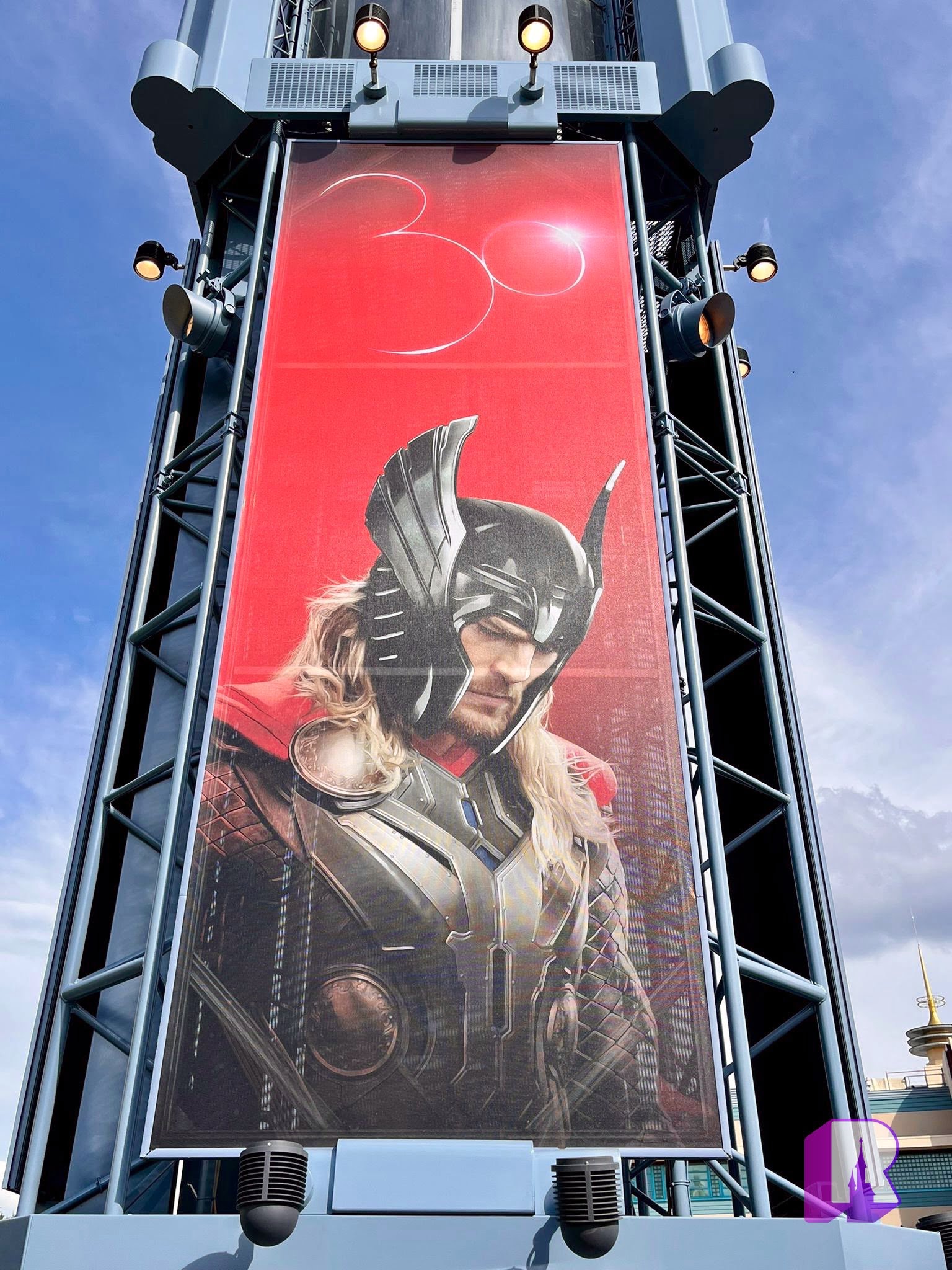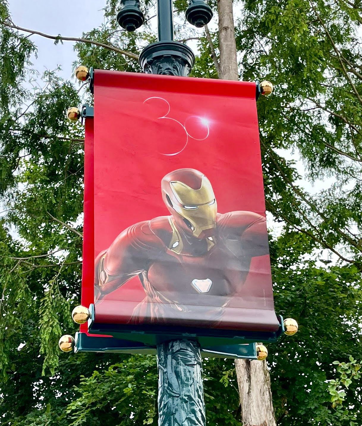 The light towers on Production Courtyard have received some new Avengers + #DisneylandParis30 designs!