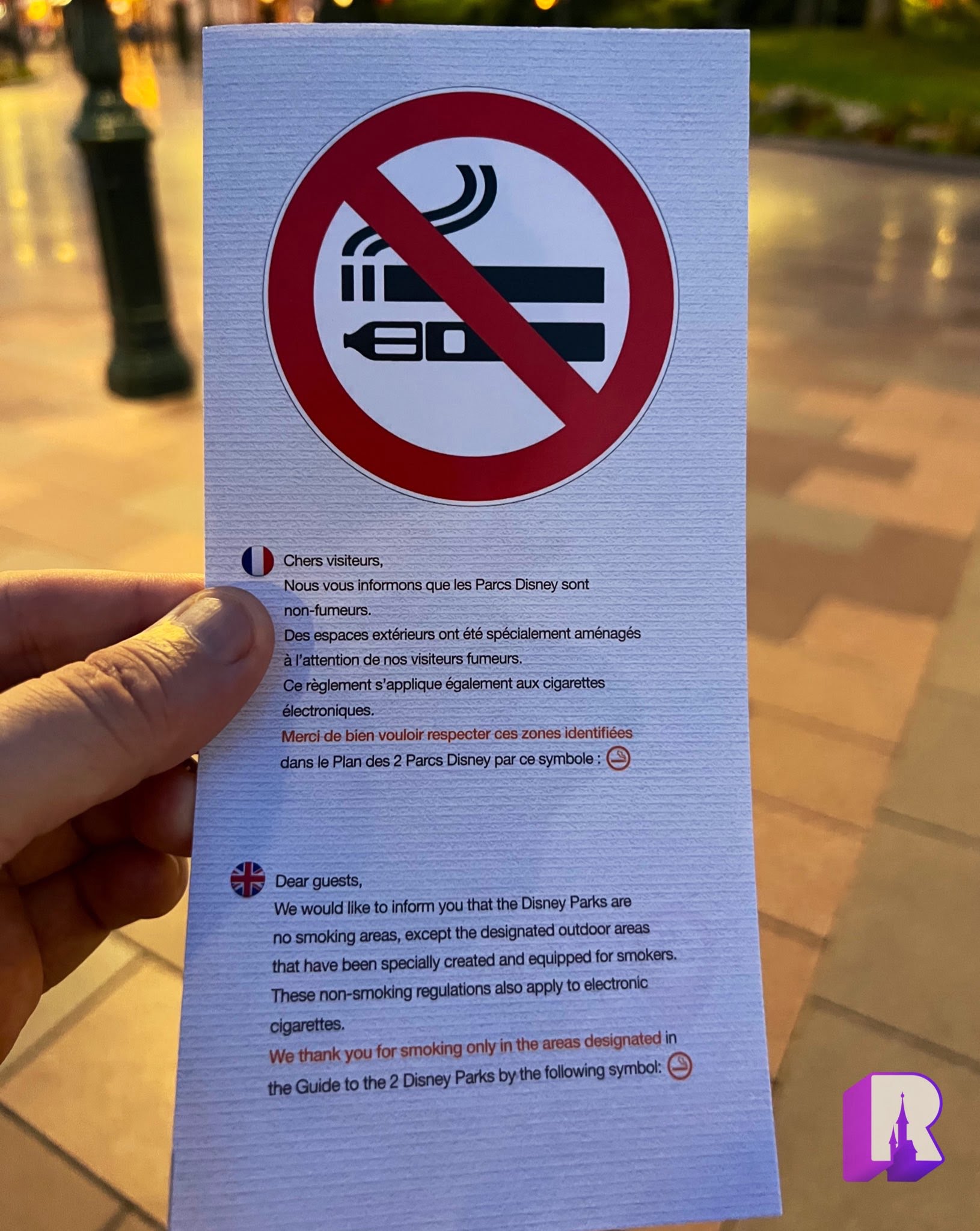 The smoking areas flyer has been updated to reflect the addition of Avengers Campus.
