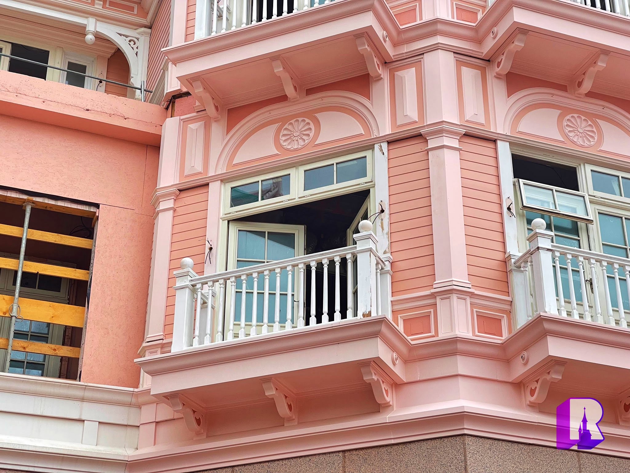 We start with slow and steady progress st the Disneyland Hotel. As you can see the inside has even completely gutted for the Olympic level Royal re-imagining expected the same year. This week we saw some nice results on the iconic clock tower, while scaffolding went up on one of the side wings.