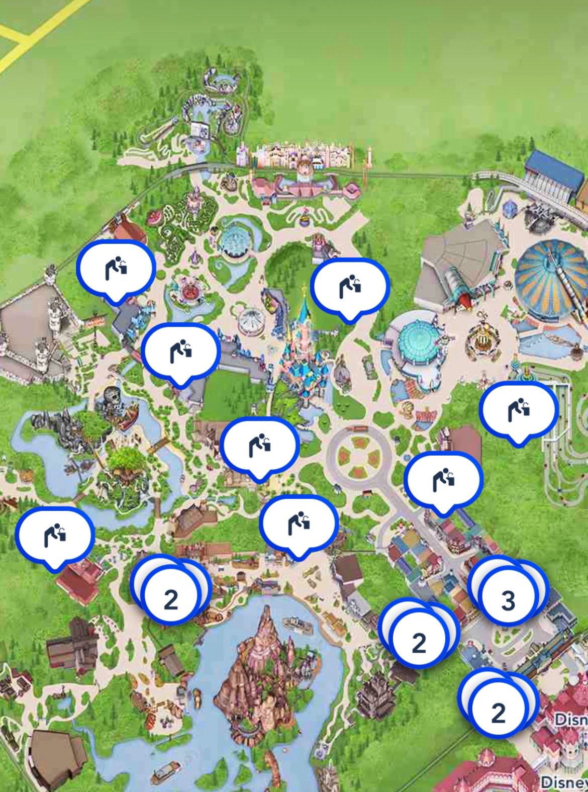 The official Disneyland Paris App now allows you to wear the location of water drinking fountains. It’s a bit hidden – open the filters menu and select Guest Services to see it