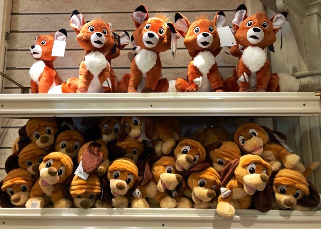 The Stitch « Big Feet » came back in stock and boy did they order a lot ! More plushes with Fox and the Hound – that pup has SEEN THINGS: