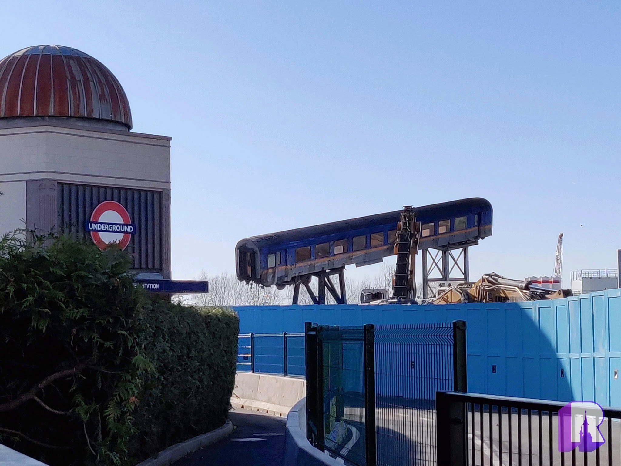 Next door, the Tram Tour sets are being bulldozed and especially the « Reign of Fire » setup which this week only had the station left, and a train car dangling in the sky