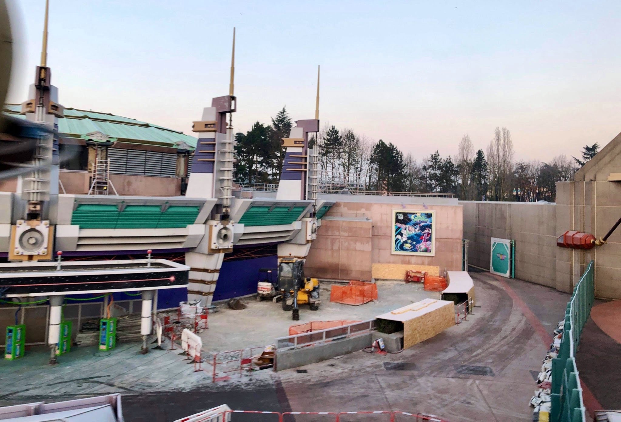 Works are progressing nicely at Buzz Lightyear Laser Blast, with scaffolding growing on the front facade and the roof, and more theming elements being removed. The external queue has been stripped for redesign.