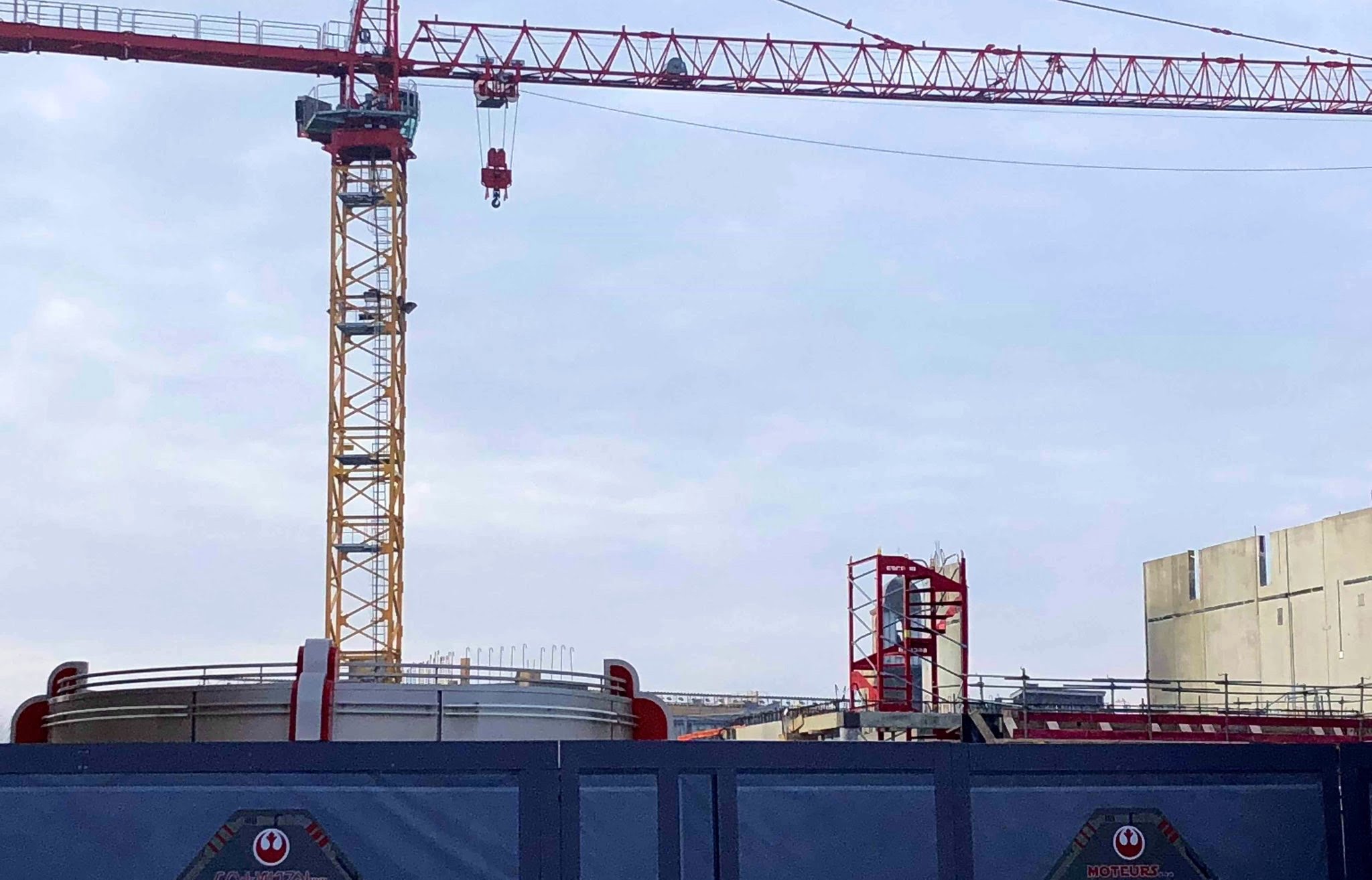 And on the site of the upcoming Spider-Man attraction, concrete walls continue to grow taller, and a set of temporary stairs were brought in.