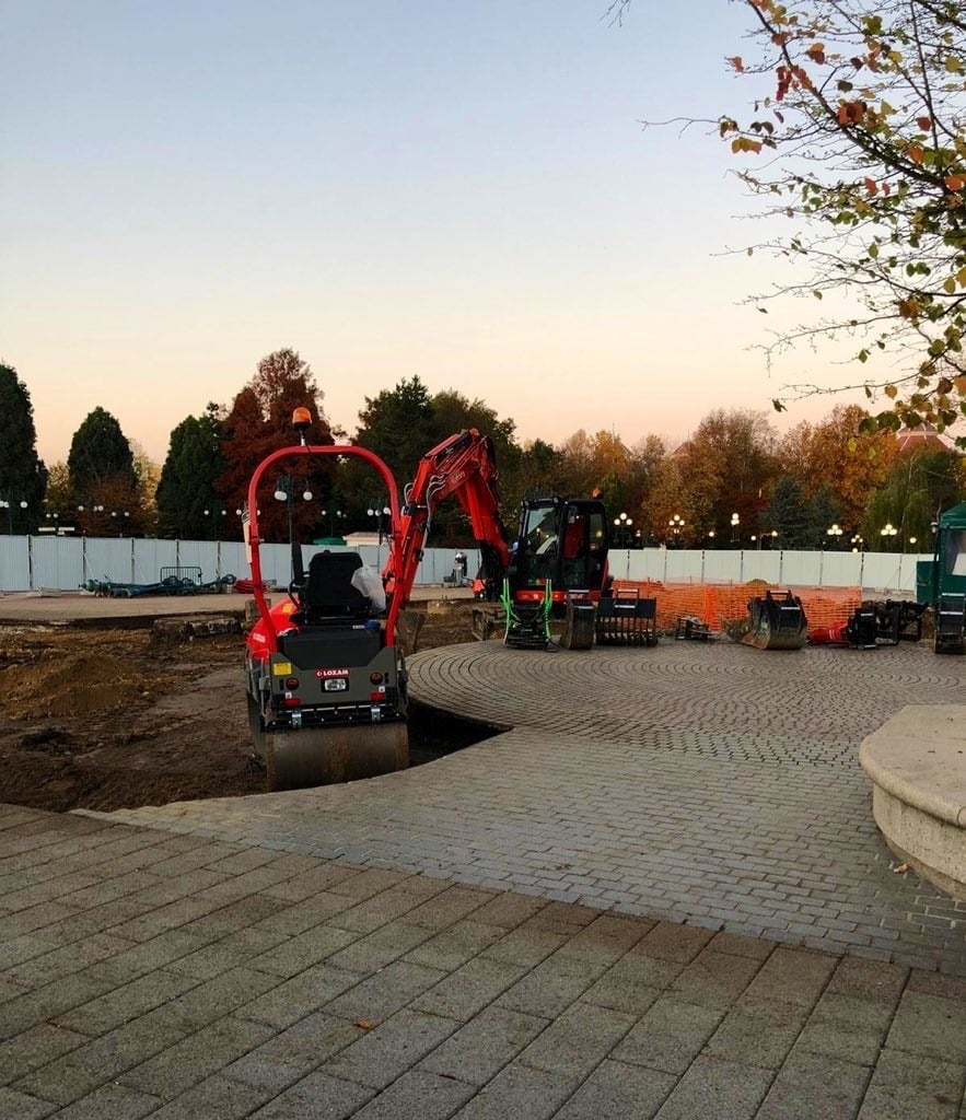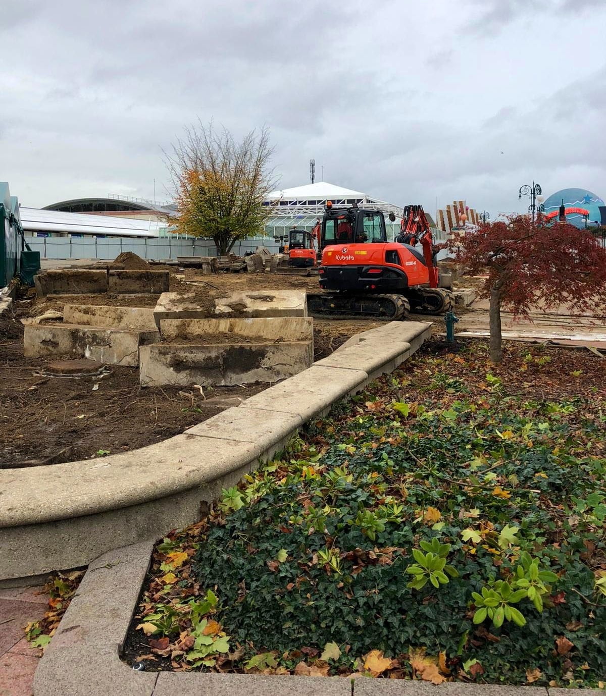 Over on the Fantasia Gardens, work progressed this week on the removal of yet another planter at the entrance.