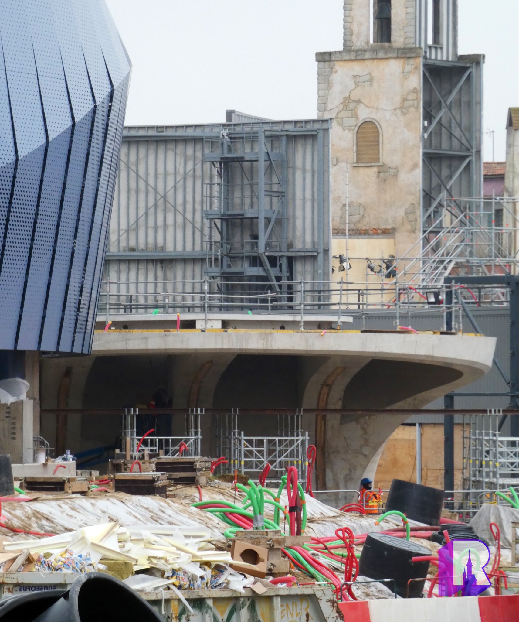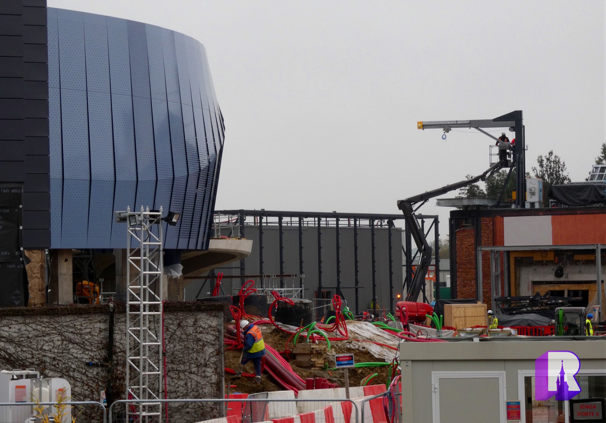 Over at the back of the land the Quinjet platform is starting to really look like the concept art, and the “Spider-Man crane” is being installed. We’re still waiting to see if the “stuntronic” will be a permanent feature in Paris. Come on let us have it!