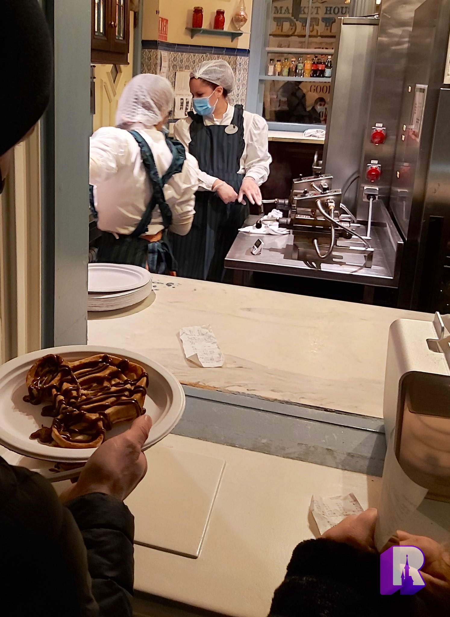 Fast forward a couple days later, Disney found a place for the Mickey Waffles – the Ice Cream Company window on Main Street which is only open weekends. Great lol. Of course it’s very popular.
