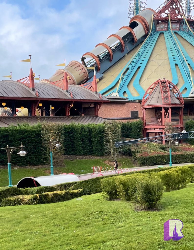 Over in Discoveryland, Hyperspace Mountain underwent refurbishment. It’s the routine change of cable for the catapult but the cannon cover was off so maybe a little more.