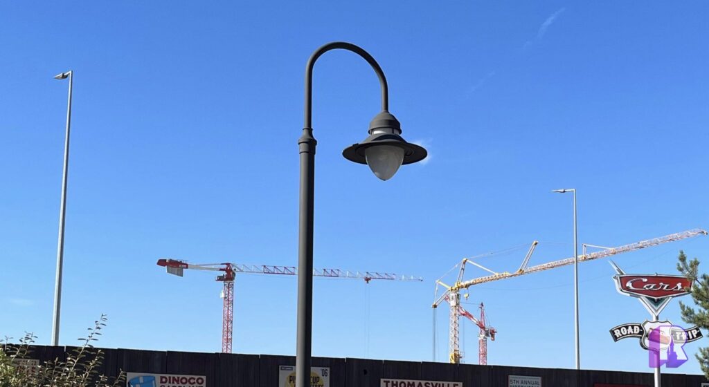 And still at Walt Disney Studios Park, a look at all the cranes working on Frozen Land / The Lake, plus some new lampposts on the temporary work road on the other side of the walls.
