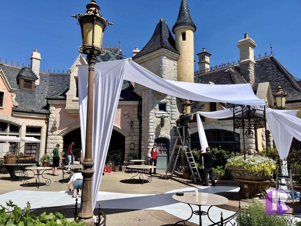In the Auberge de Cendrillon Courtyard, a special event – likely a wedding – was in preparation.