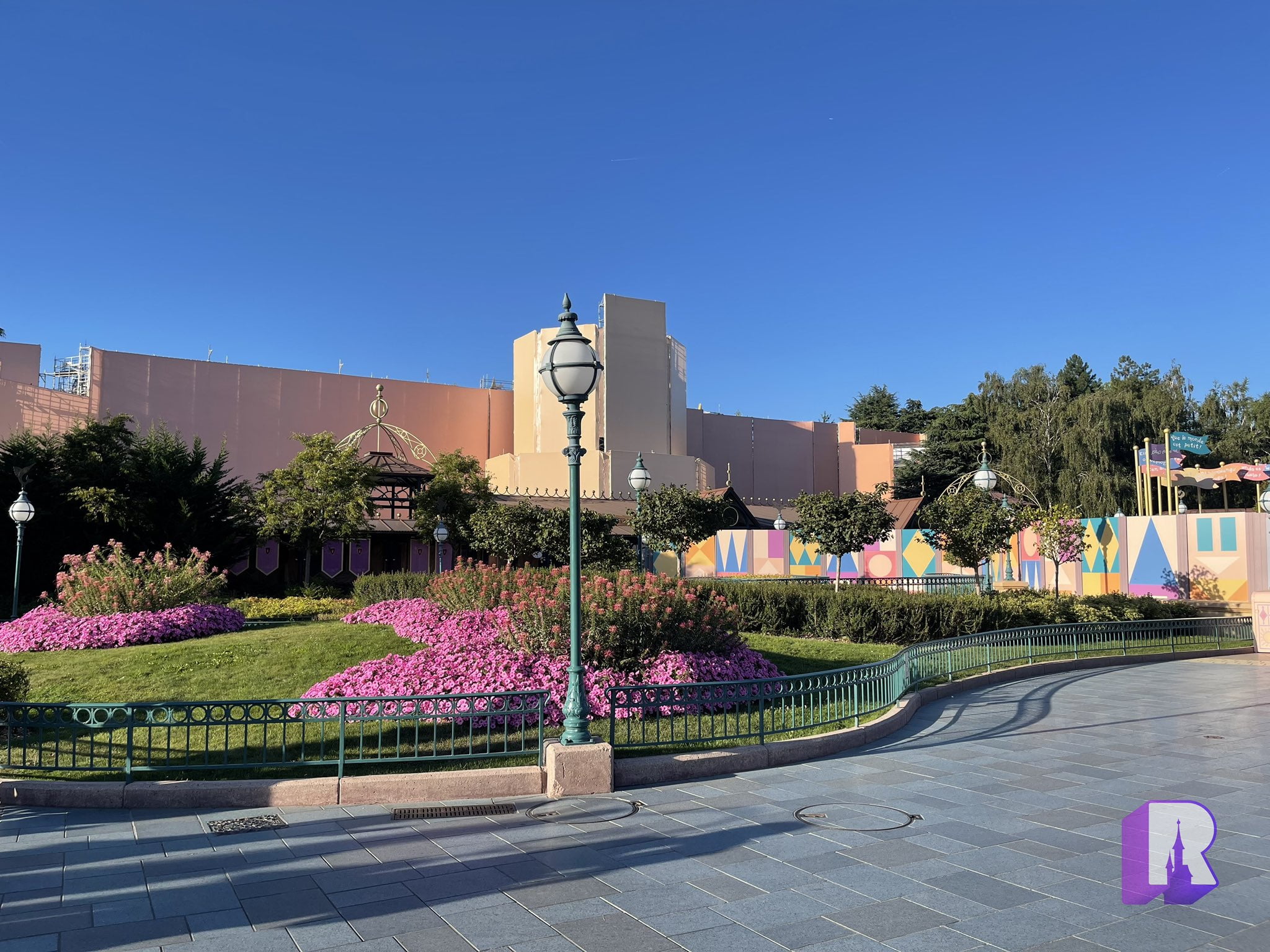 Refurbishment continues at « it’s a small world » with the entire building now behind tarps. Work is also ongoing in the queue and of course inside. There is no official reopening date for the Attraction but we are crossing fingers for the end of the year!