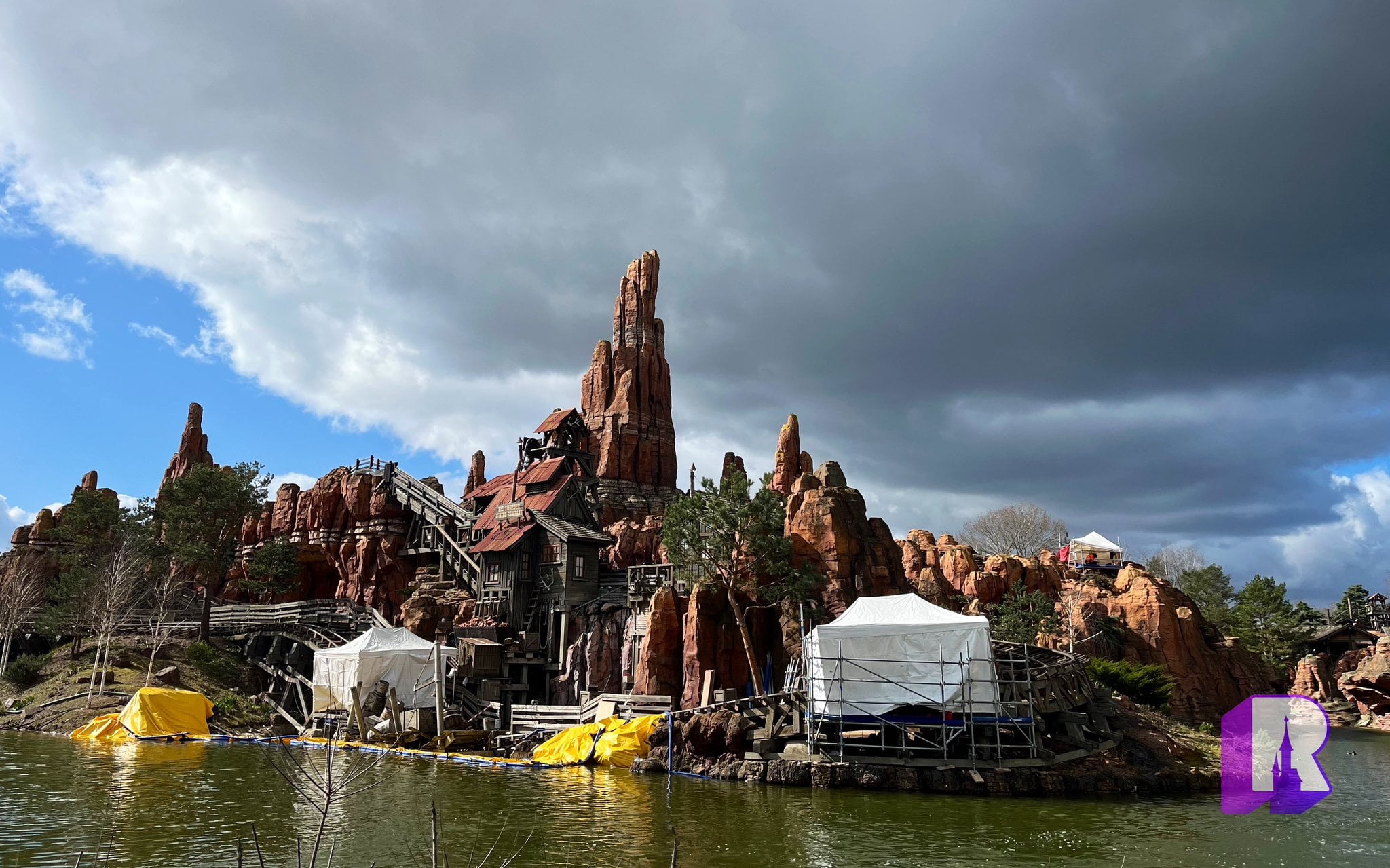 Work on the tracks continue at Big Thunder Mountain with a pretty big setup near the water. The Attraction reopens April 1.