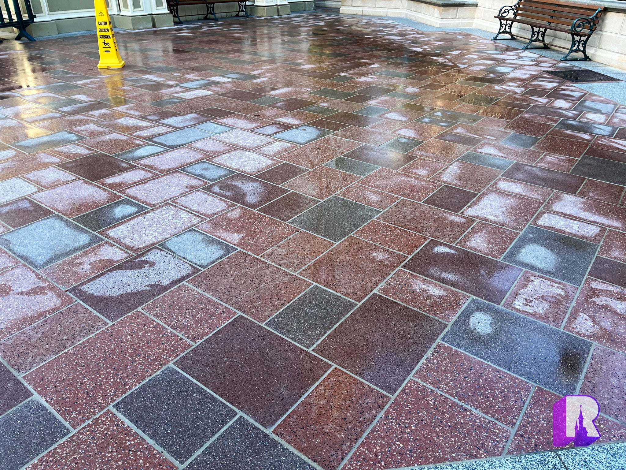 In Station Plaza, a new repaved sera has been unveiled near the usual park exit. Looks great! Refurbishment of this area continues until this fall, aiming to replace old concrete with nicer pavers.