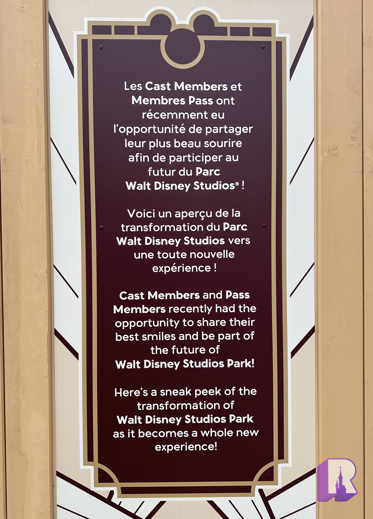 In Front Lot, the Studio 1 construction walls have received digital art versions of some of the Disney Adventure World concept art that include faces of Disneyland Pass and Cast Members: