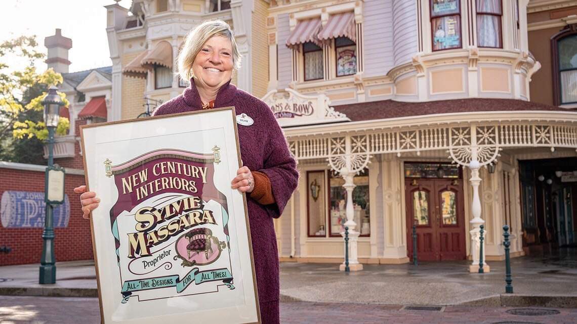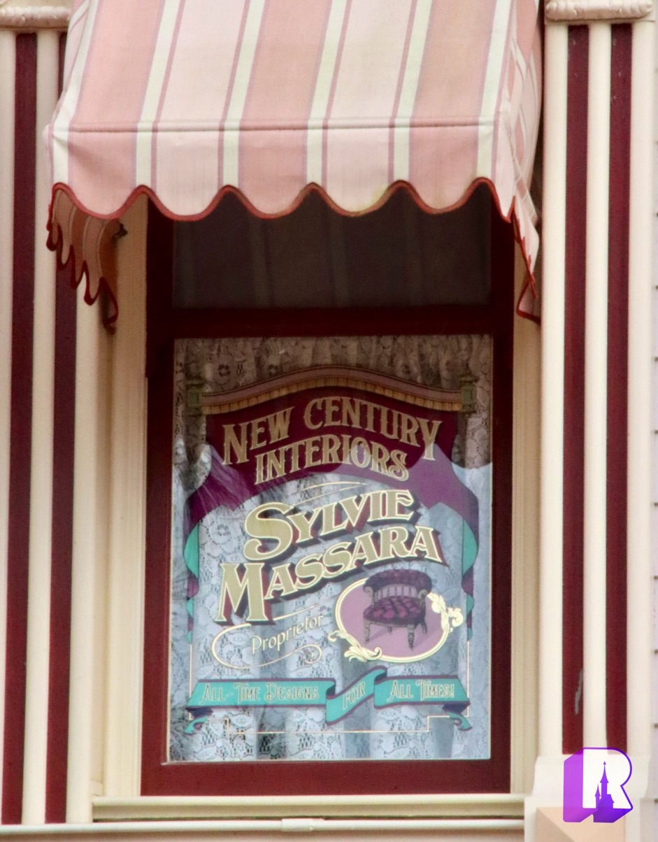 Disney Imagineer and Art Director Sylvie Massara, who is retiring, has received a “Window on Main Street” above Ribbons & Bows. Sylvie joined the company in 1988 and worked on numerous projects from Fantasyland shops to Disney Hotels, most recently the re-imagining of the Disneyland Hotel. Thank you for everything, Sylvie!