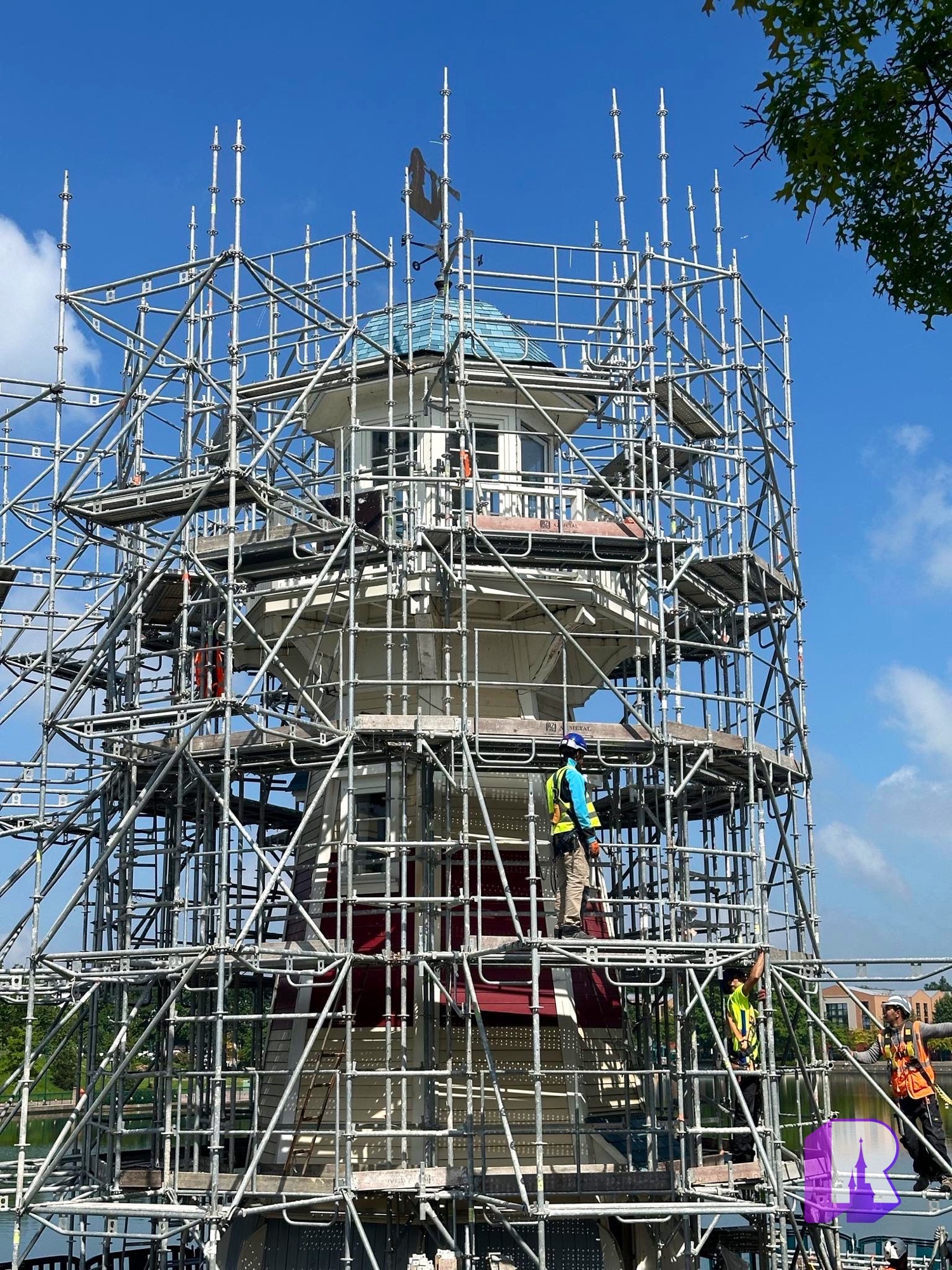 And finally around Lake Disney, scaffolding is growing around the Disney Newport Bay Club lighthouse which is getting an extensive refurbishment.