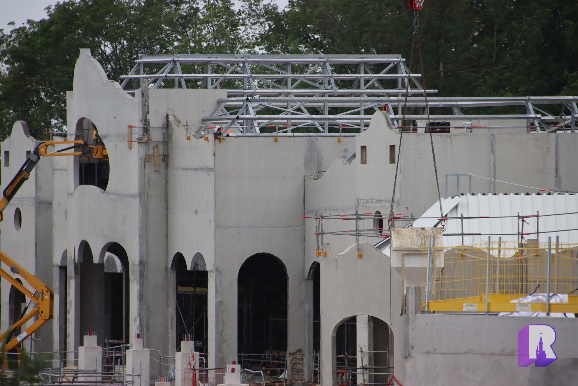 Progress is also being made all around the lake, including on the well themed rotating bridge and the various viewing areas for the shows on the lake.