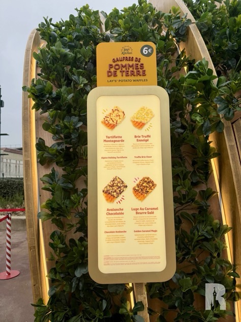 Un pop-up éphémère « Lay’s Kitchen » a ouvert au Disney Village. Ce stand propose des gaufres de pommes de terre agrémentées de chips, en version sucrée ou salée. Si le goût est correct, le concept avec des chips sur le dessus est… spécial !