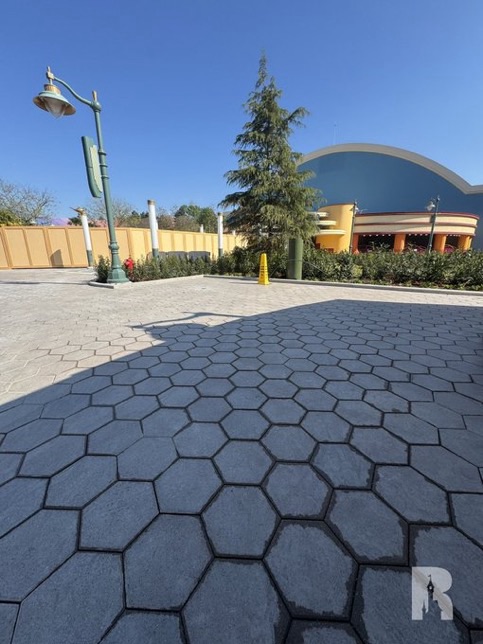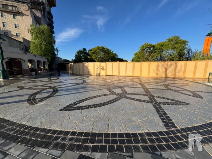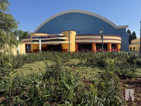 There’s also been some movement at Animagique Theater, technically also part of World Premiere Plaza, with walls partially down so that the theater can reopen next week with a new season of Mickey and the Magician. The style here is very similar to the other side at Studio Theater – clean, functional, more trees and benches.