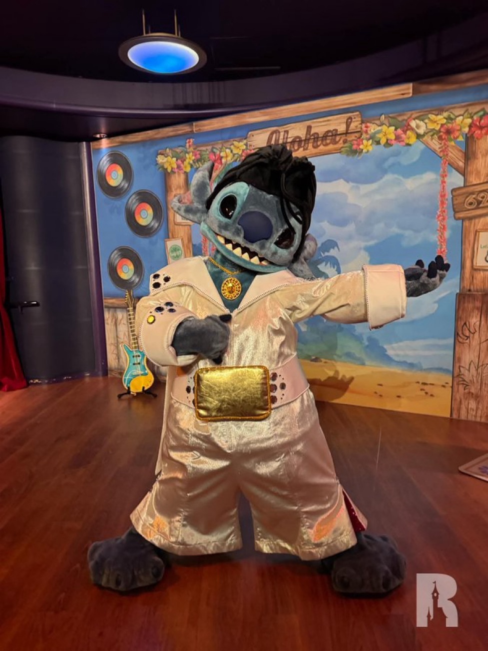 Across the way in Discoveryland, Stitch is doing his best Elvis impersonation.