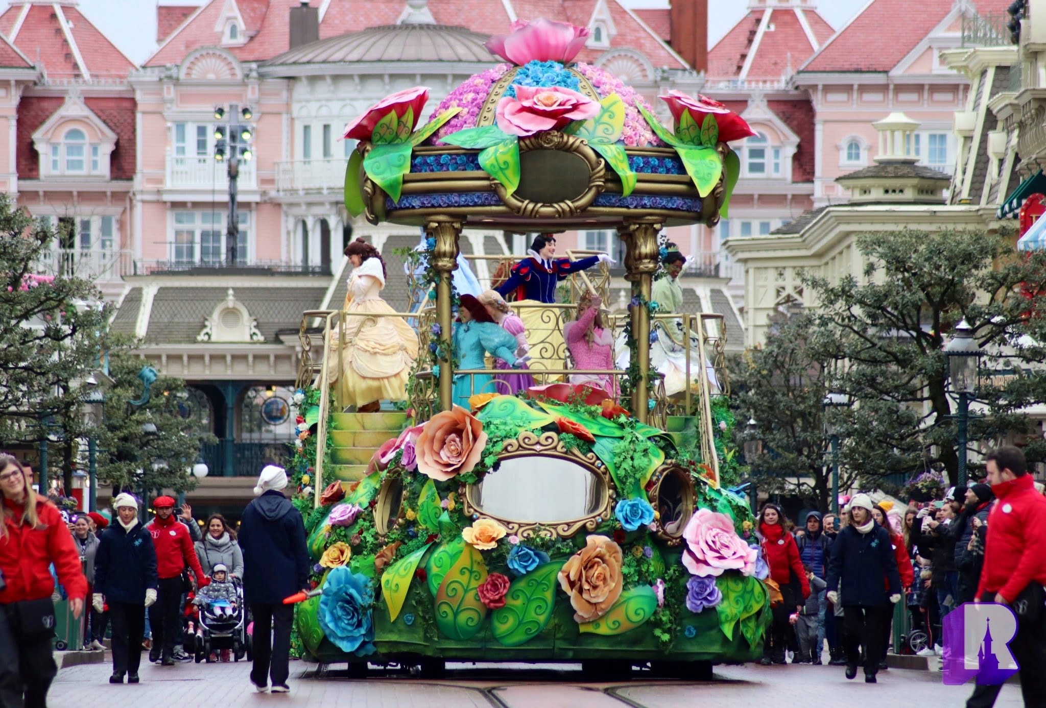 Faced with the issue of closing the Princess Pavilion on Tuesday, the Disneyland Paris entertainment team wheeled out the flower float known from « Pirates & Princesses » and 8 Princesses greeted guests on Main Street and even stopped for a show in the hub!