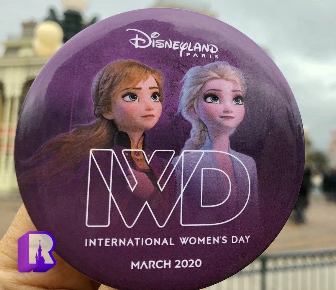 In the Parks, Guests could obtain a free button, and at night, a fun pre-show featuring Disney heroines was presented on Sleeping Beauty Castle: