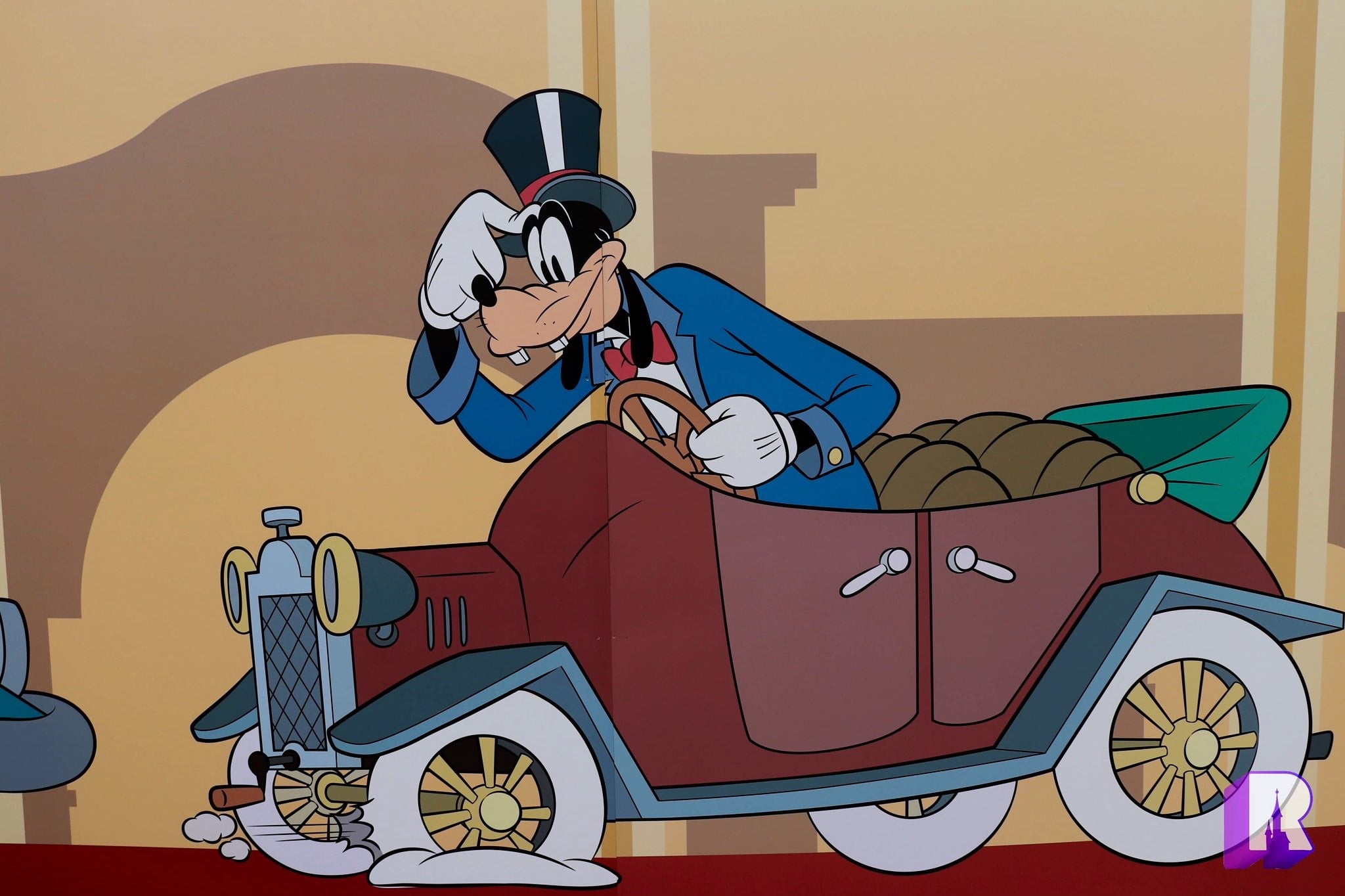 And on Friday, amid the cancellation of most of the outdoor entertainment, Goofy drove down Main Street in his Producer outfit (they found it!) on a vehicle from the « Stars n’Cars » Parade: