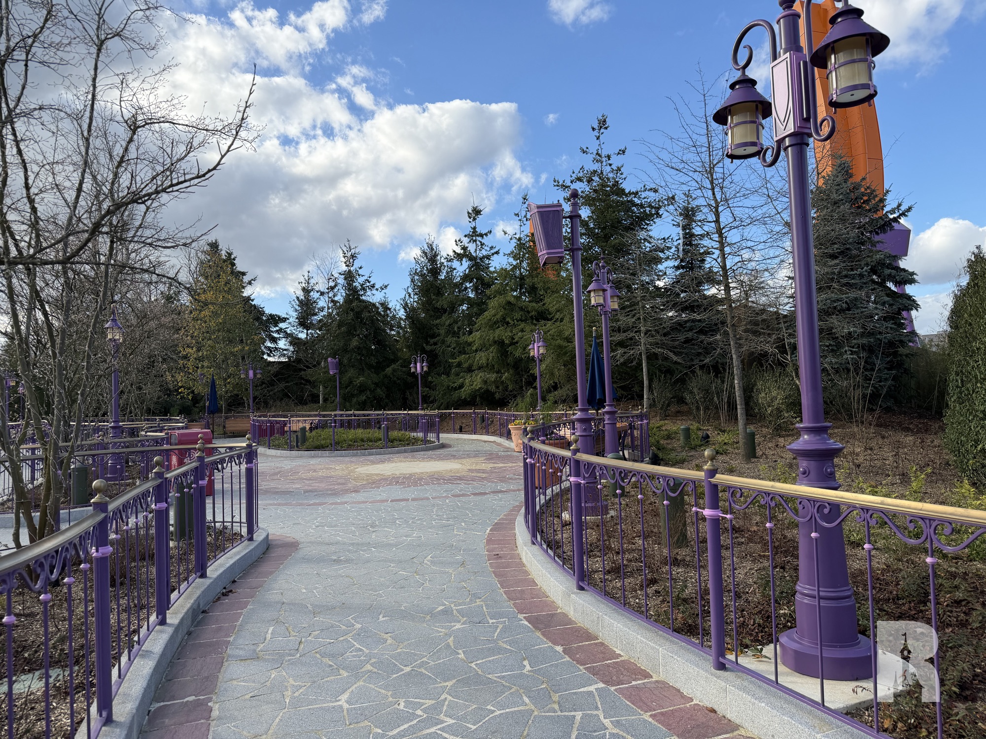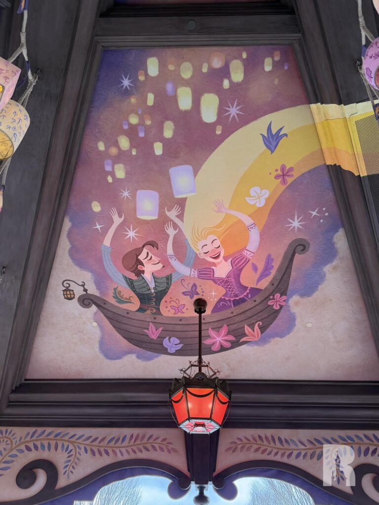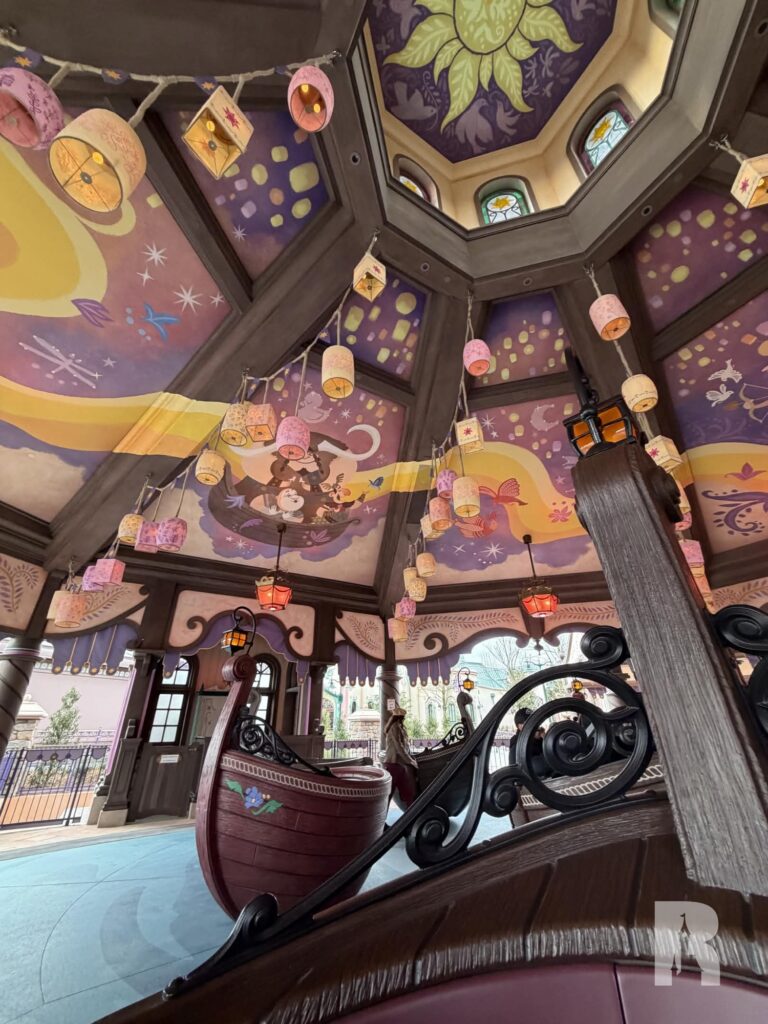 But Adventure Way isn’t just a road, it’s sprinkled with a number of attractions (and future attractions). The idea for this area is not to fully immerse guests in the story (like the “worlds” around the lake) but rather create a garden-like area inspired by Disney stories. “Raiponce Tangled Spin” is the most prominent result of this approach.