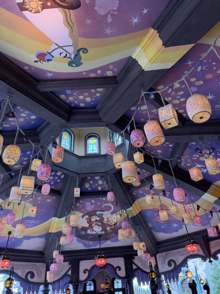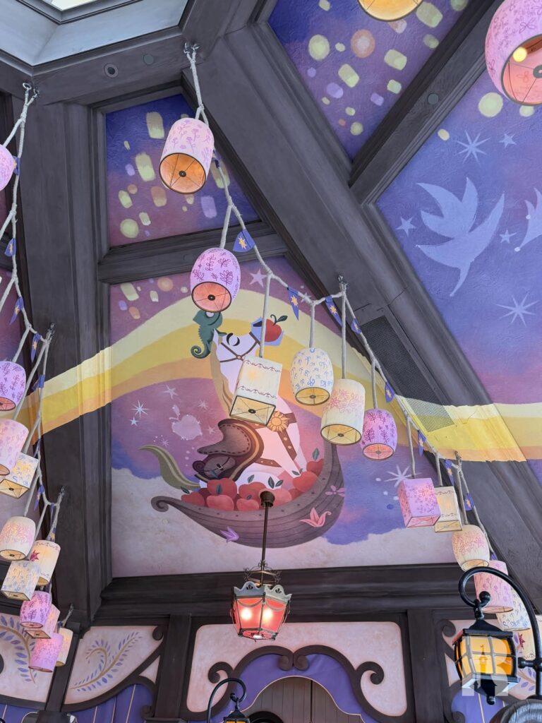 It’s a teacup-style attraction. It has low capacity. These are the obvious flaws but what it doesn’t have in efficiency or thrill, the attraction makes up in cuteness with its whimsical show building, wonderful painted ceiling and many story details throughout.