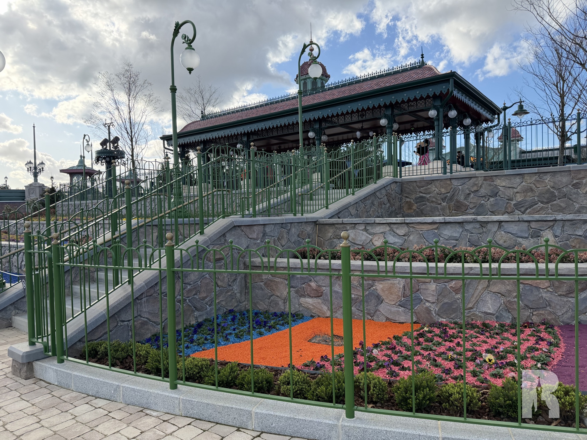 Across from “Raiponce Tangled Spin” are the English Gardens, design to host small characters shows.
