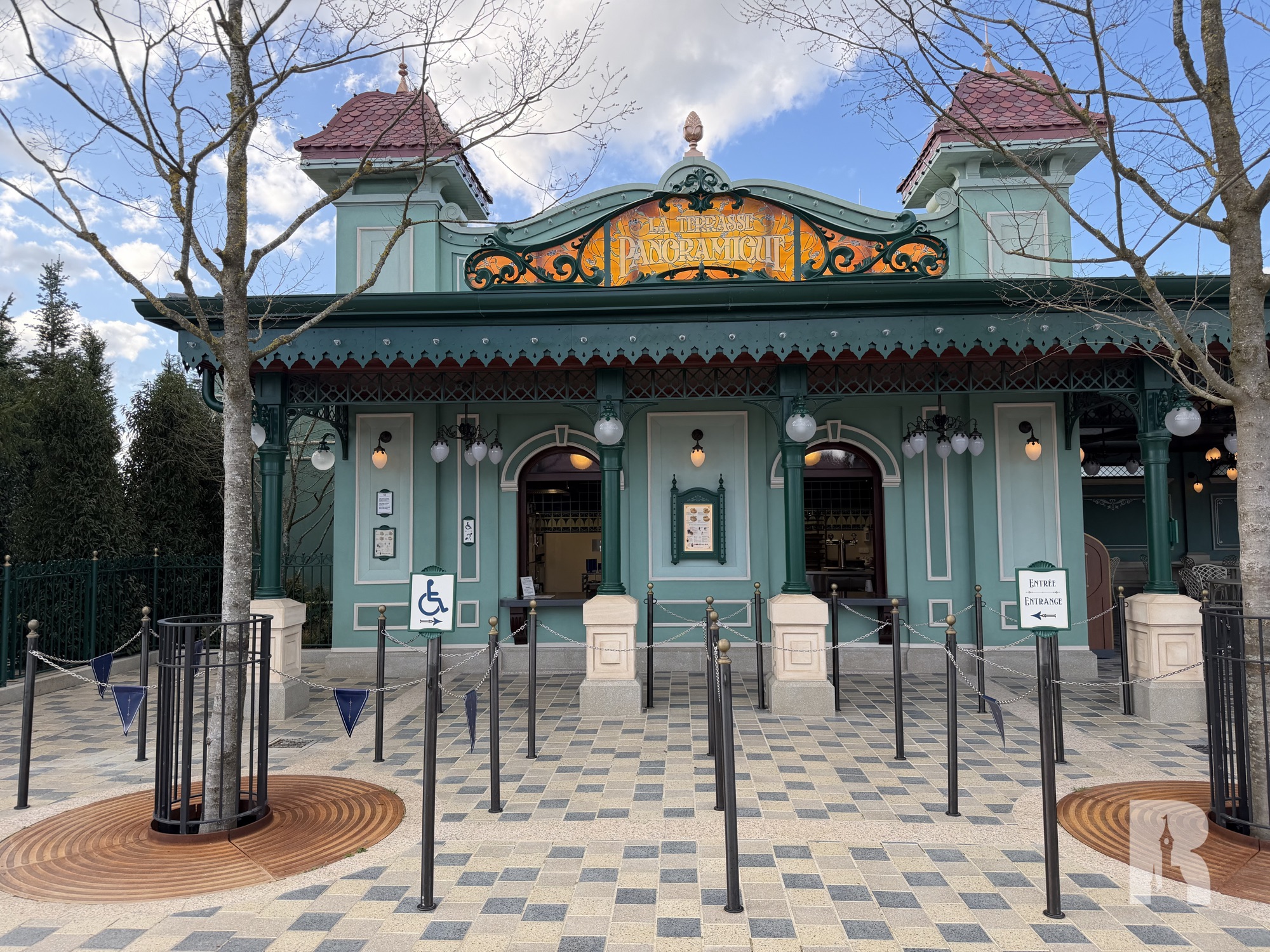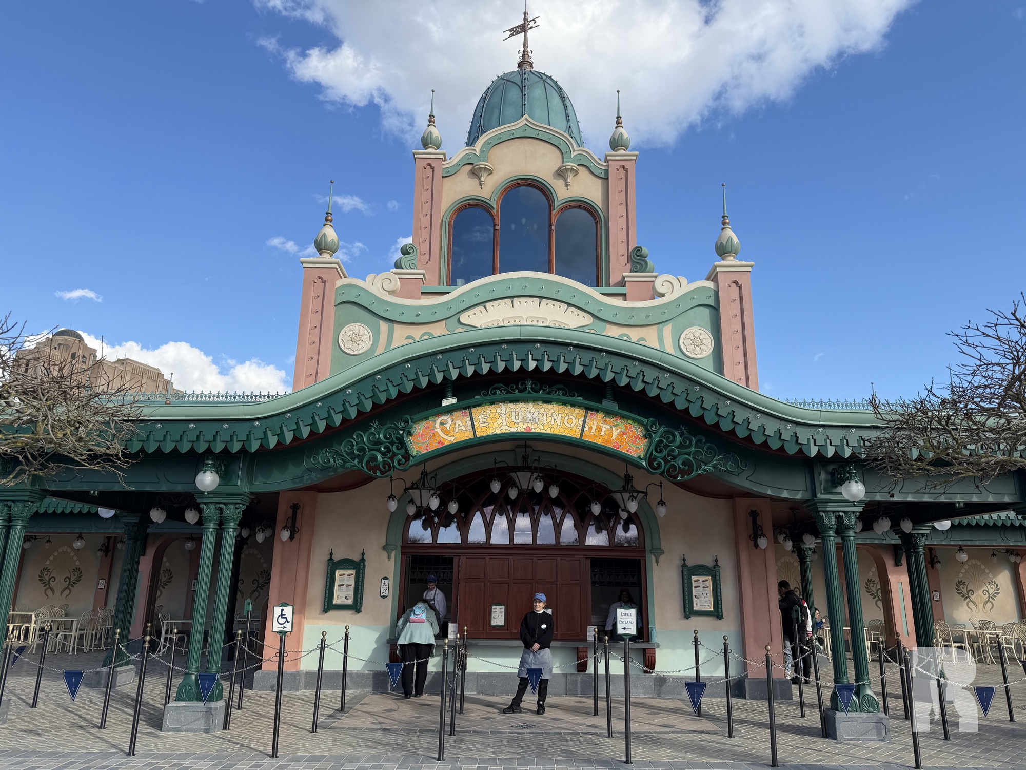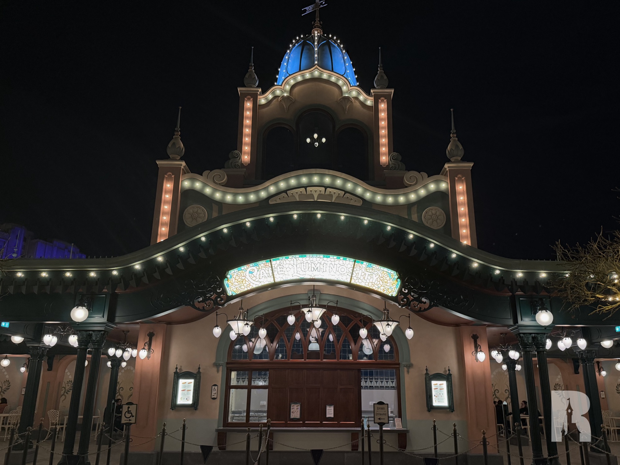 On the south side of Adventure Bay you’ll find Cafe Luminosity. The gorgeous building (again matching the area’s aesthetic) is also the show control tower (one of them at least).