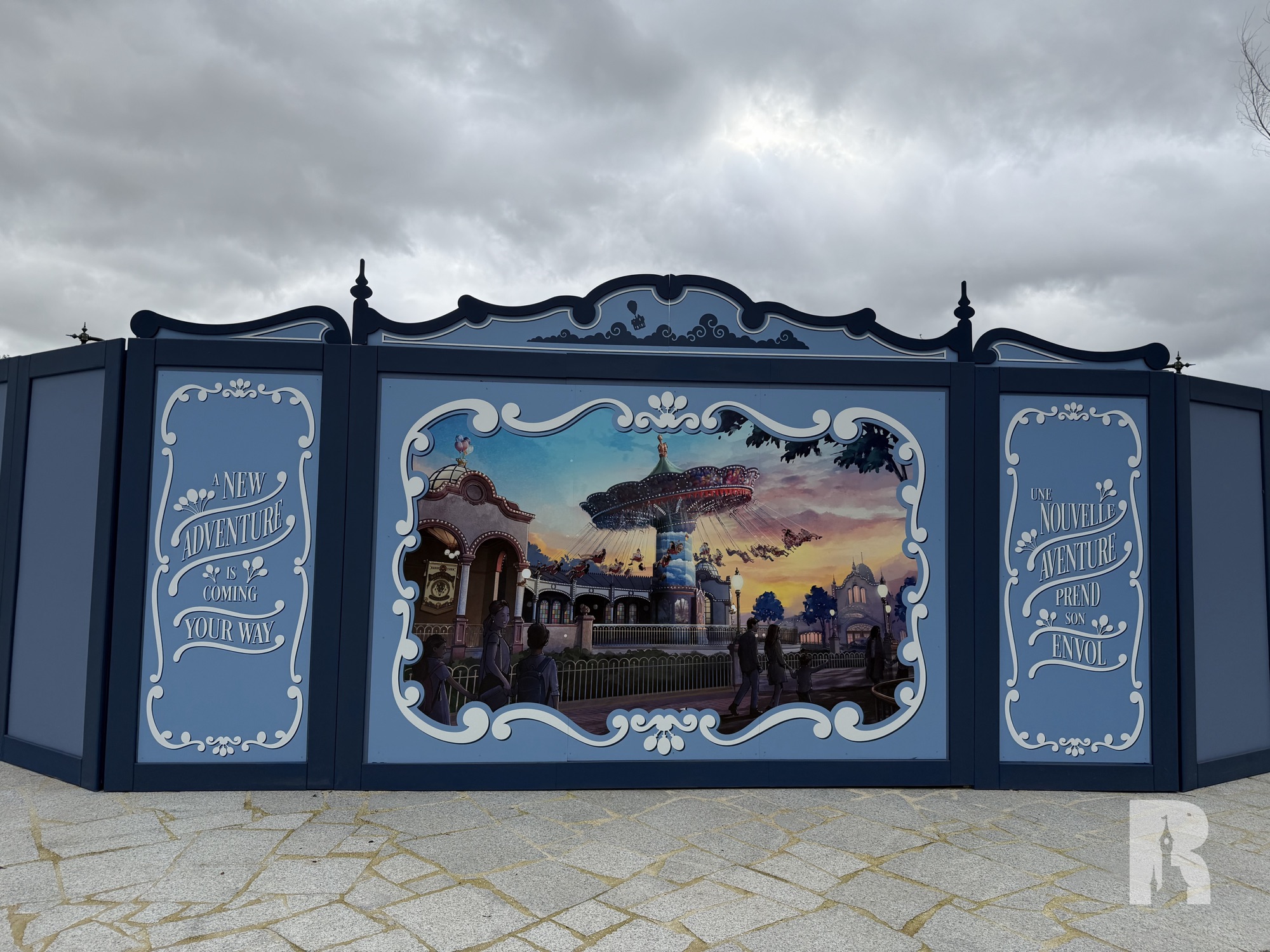 Designed to mirror “Raiponce Tangled Spin”, the “Up” spinning chairs attraction is unfortunately slated for 2017, following the same “garden inspired by the Disney story” idea. So in the meantime we have to deal with this first series of walls. It’s not shocking in person but too bad that the full vision of Adventure Way couldn’t be realized straight from opening.