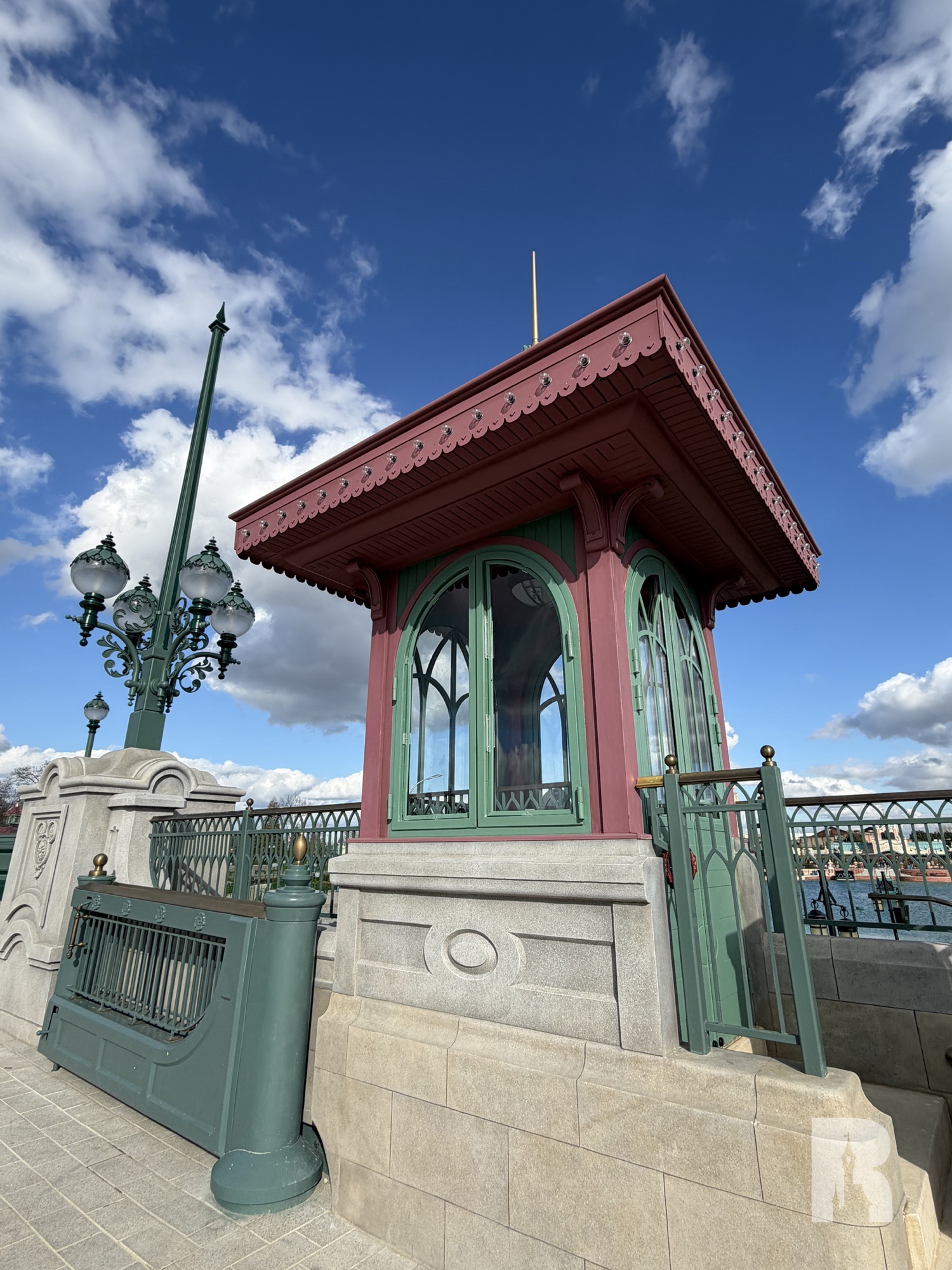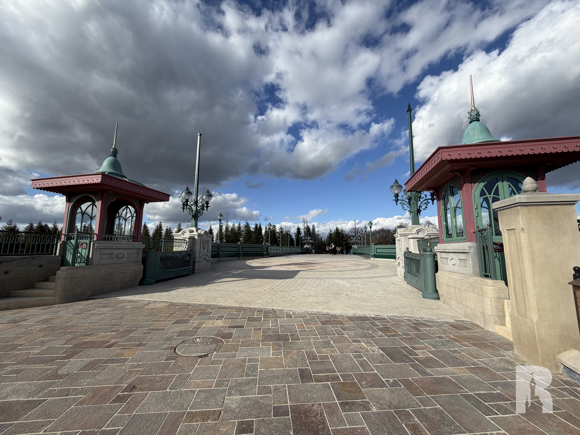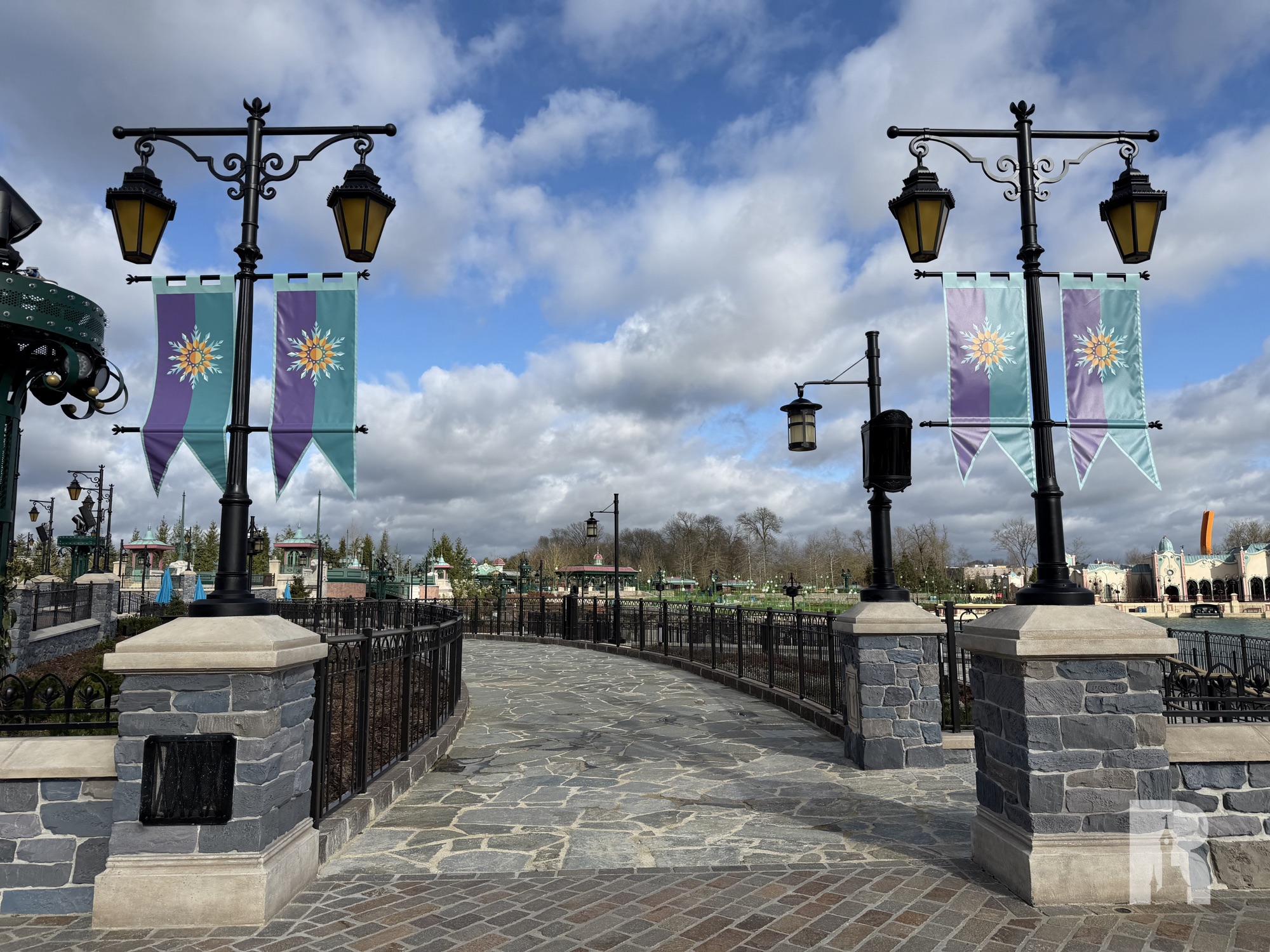 Adventure Bay North also features the “Pont des Lumières”, the unique and beautifully themed rotating bridge. With its own set of lampposts, detailing and gate houses, it gives the area some depth. The bridge will open about 3 hours before the night show to let the Disney Cascade of Lights barges in and will remain inaccessible from that time due to safety considerations.
