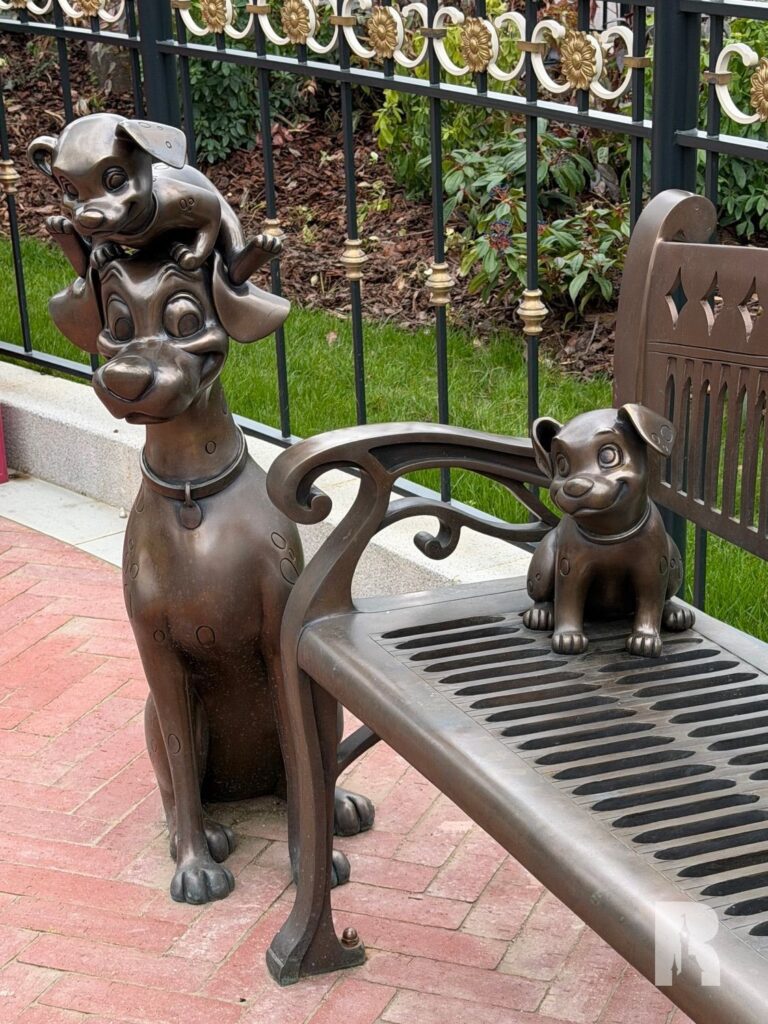 The English Gardens also feature bronze benches with lovely character statues.