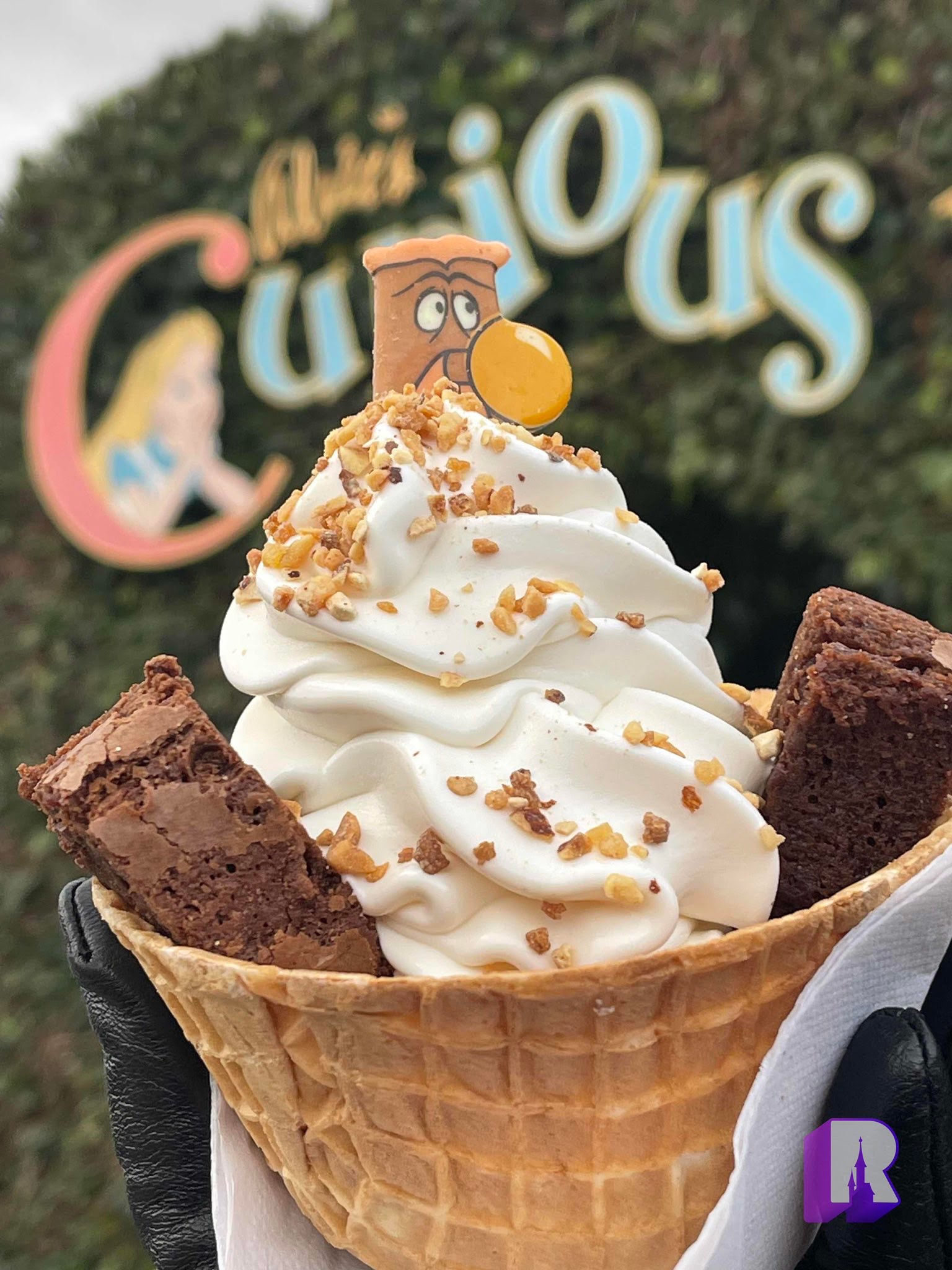 A new ice-cream creation arrived over at March Hare Refreshments in Fantasyland. The “Won’ Door’ land Ice Cream” is vanilla soft serve with brownies and caramelised hazelnuts. (€5). It’s tasty and pretty filling but replaces the iconic Cheshire Cat inspired ice cream sadly.