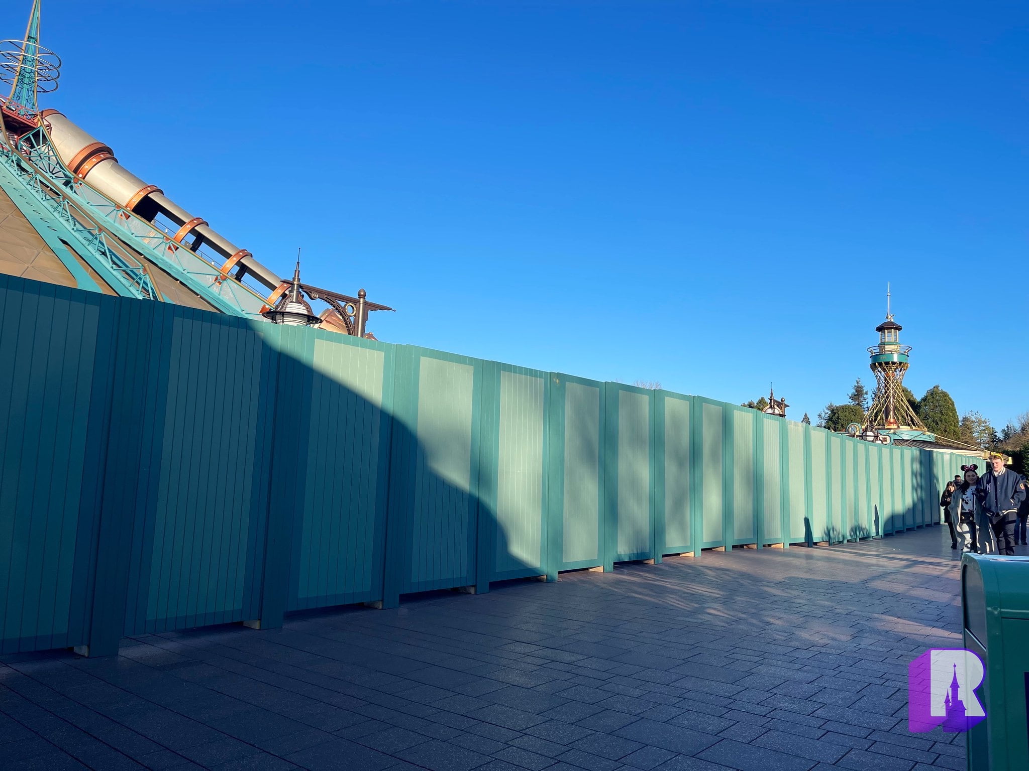Miles and miles of walls have been installed in Discoveryland, all around the the Nautilus basin. It’s not clear what’s going on here – if it is just a cleaning or if structural repairs are being done on the basin or Nautilus. There is still no reopening date for the attraction which is currently being upgraded.