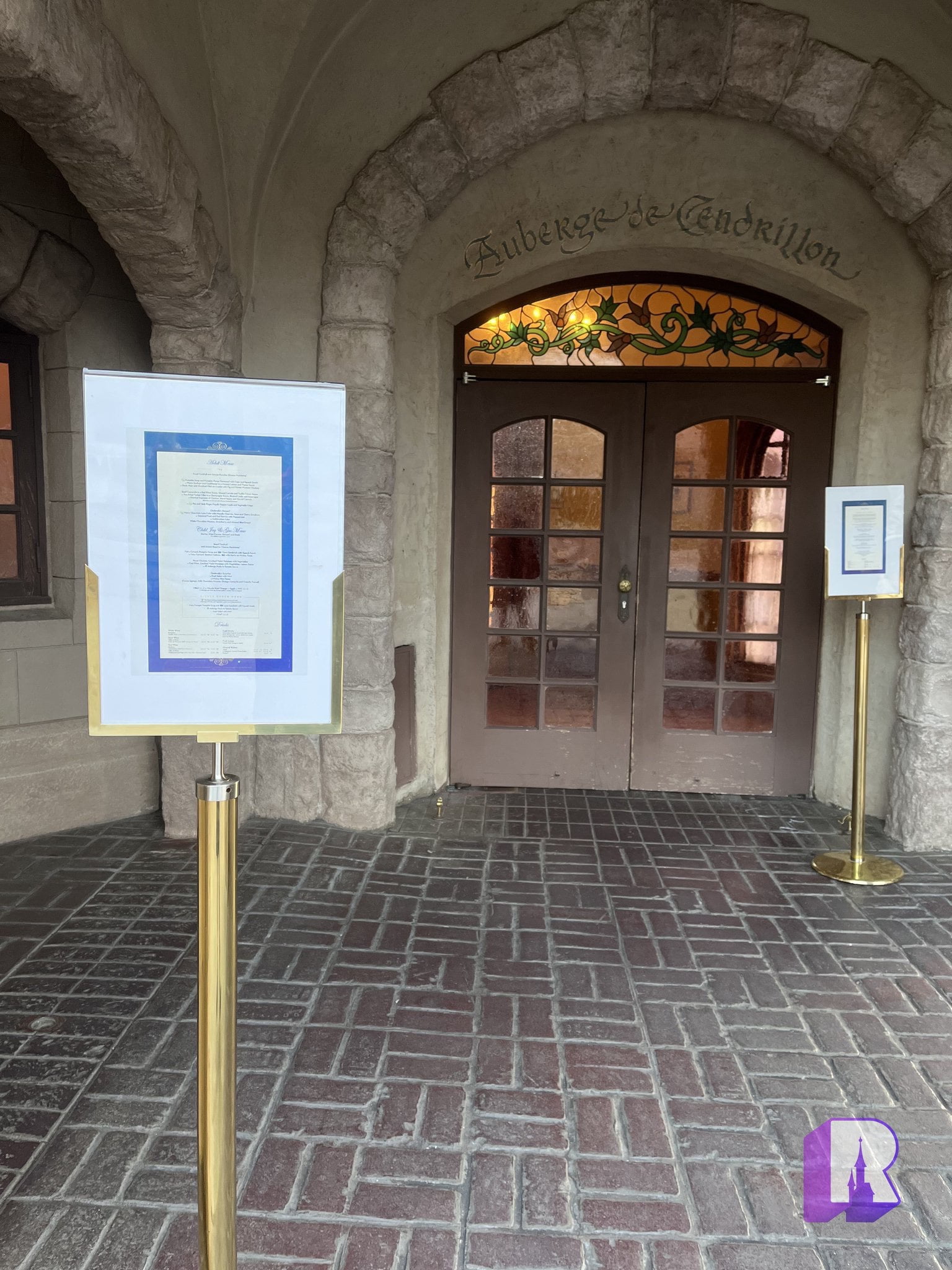 In Castle Courtyard, the menu board for Auberge de Cendrillon has been removed for refurbishment and in the meantime, we get these temporary ones.